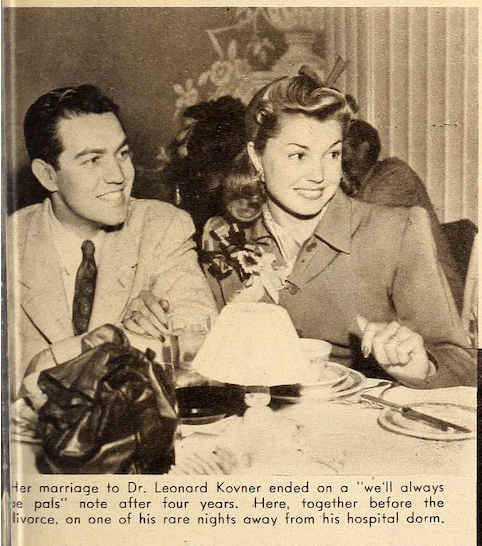 The fan magazine Modern Screen took it even further in a cover story in 1946: the caption of a photo of Esther with Leonard read, “Her marriage to Dr. Leonard Kovner ended on a ‘we’ll always be pals’ note.” This despite the “mental cruelty” charge that was widely reported at the time. But such inconvenient acrimony was hardly an obstacle for MGM’s press agents.