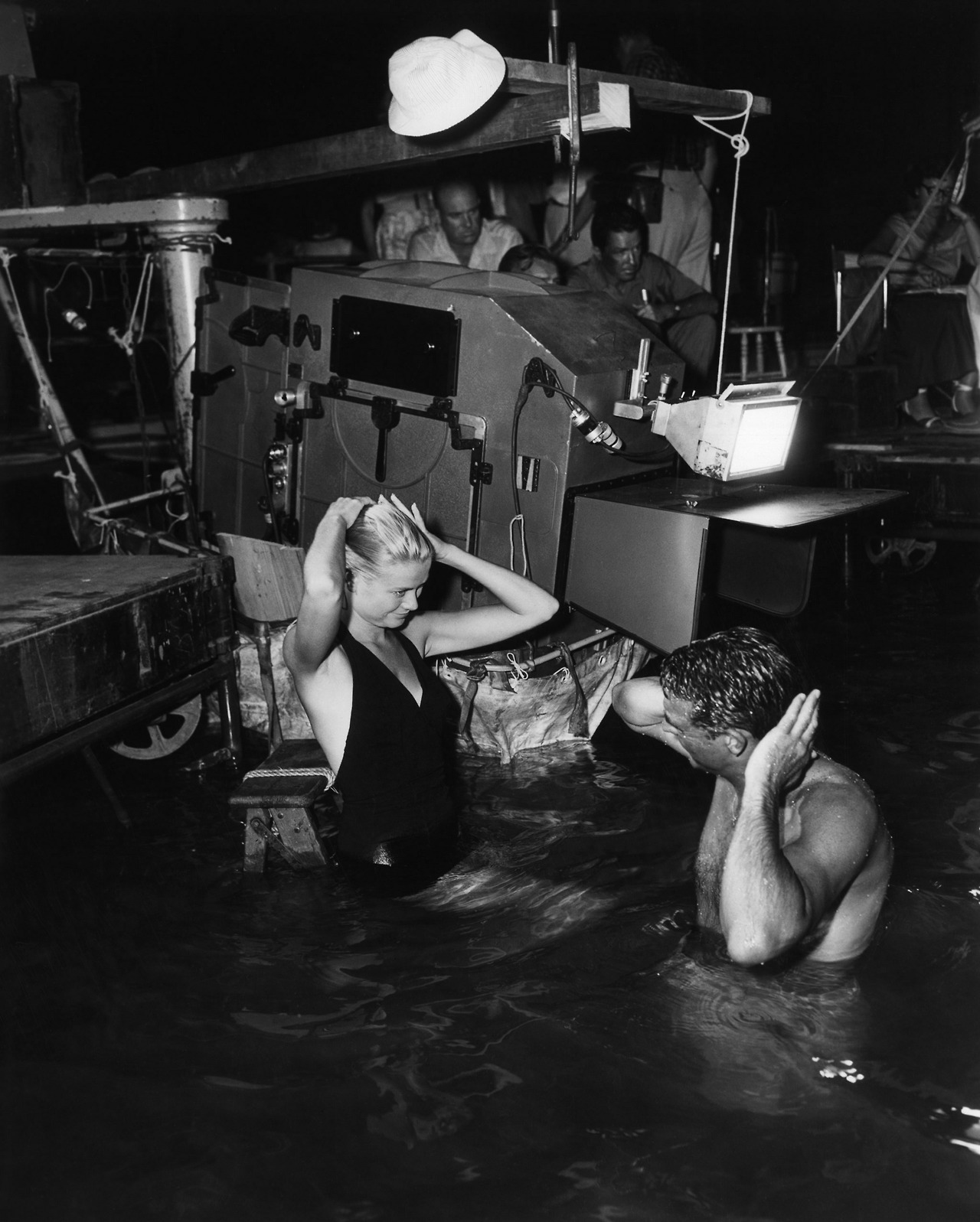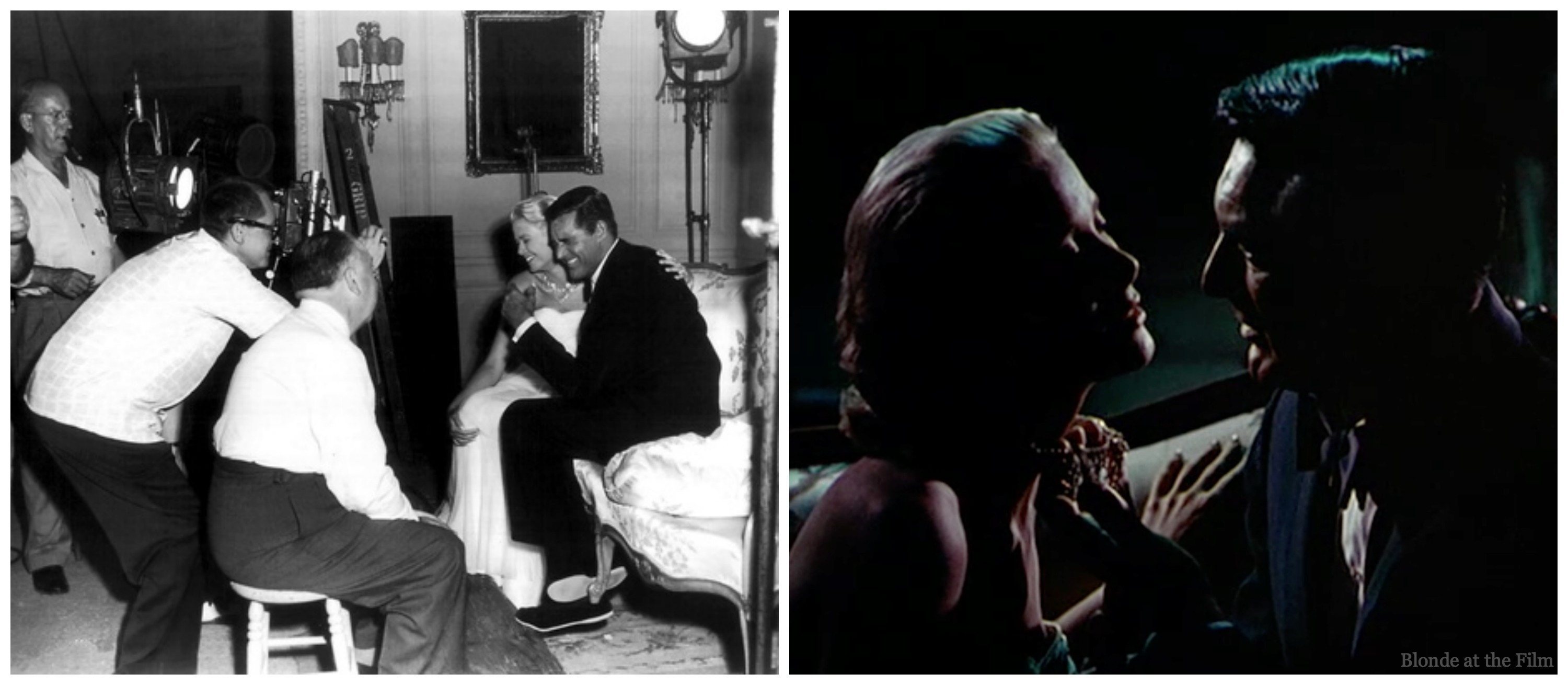 I like these on set photos because they show how incredibly close the cameras, lights, and people are to Kelly and Grant as they perform this scene.  It comes across as so private and dark in the film–movie magic!