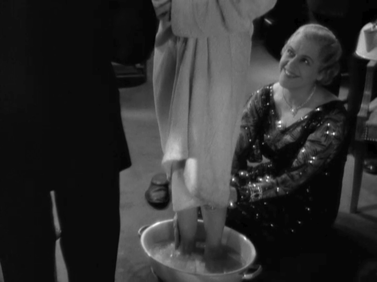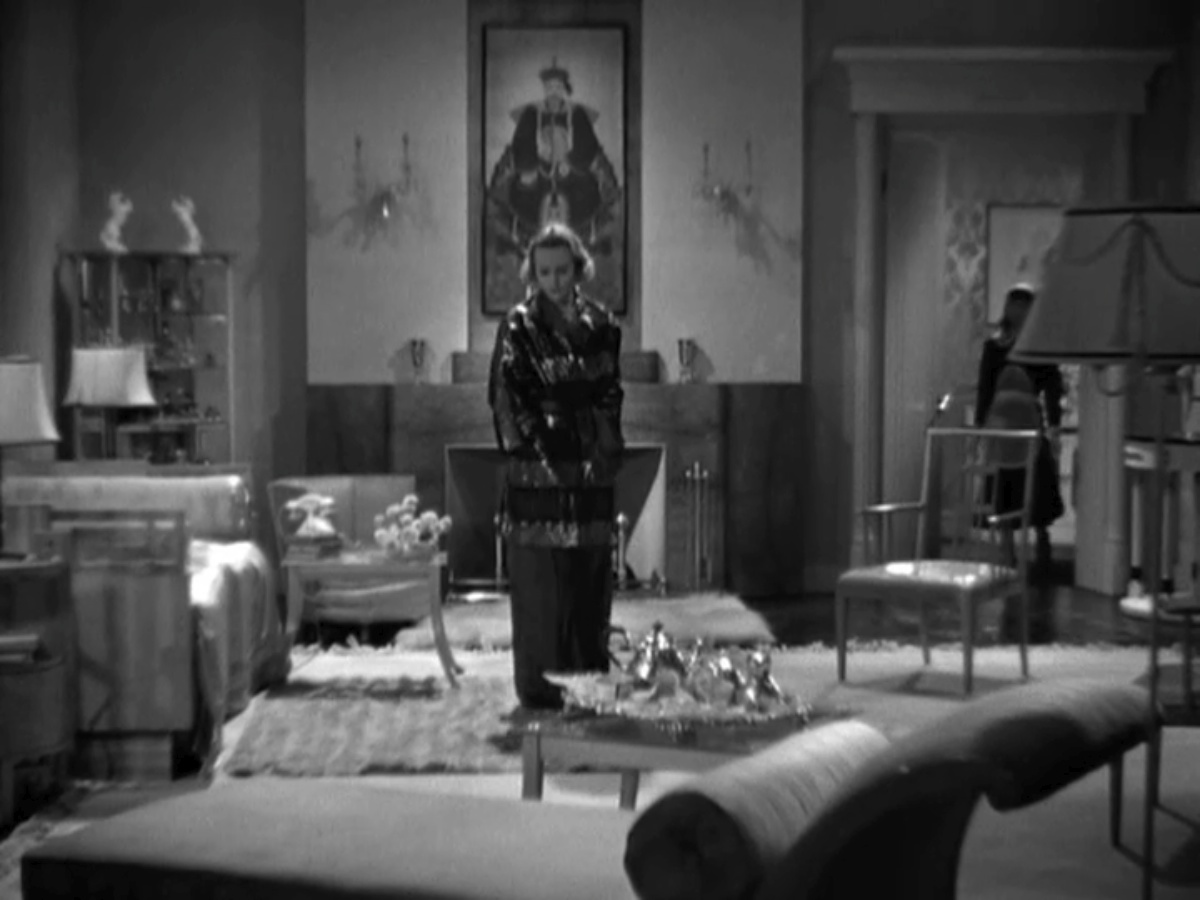 The next day Kay’s mother (Janet Beecher), in a sharp black and white frock (how free her elbows must have felt!) suggests that Kay go to the beauty parlor to see if they can fix her black eye.