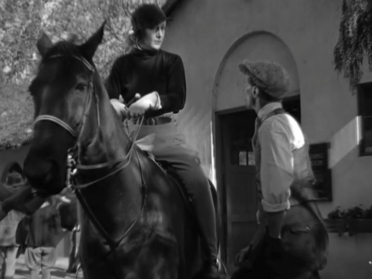 A few days later Kay goes riding and warns the groom that a man might come looking for her. She says he is mentally unstable, and suggests they give him the craziest horse in the barn.