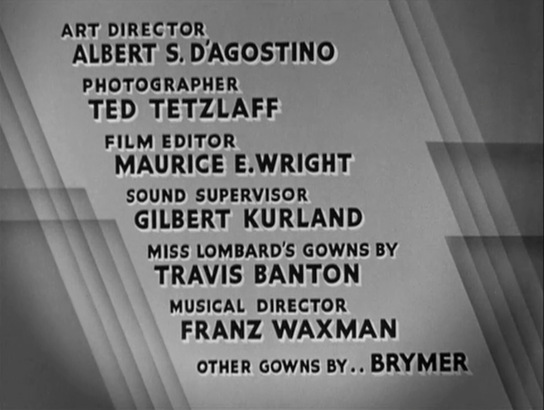 Ted Tetzlaff, a cinematographer she liked (who also shot The Princess Comes Across, Hands Across the Table, My Man Godfrey, Notorious, The More the Merrier, and Easy Living), and her trusted costume designer, Travis Banton, who designed her costumes in The Princess Comes Across, We’re Not Dressing, Hands Across the Table, and My Man Godfrey.