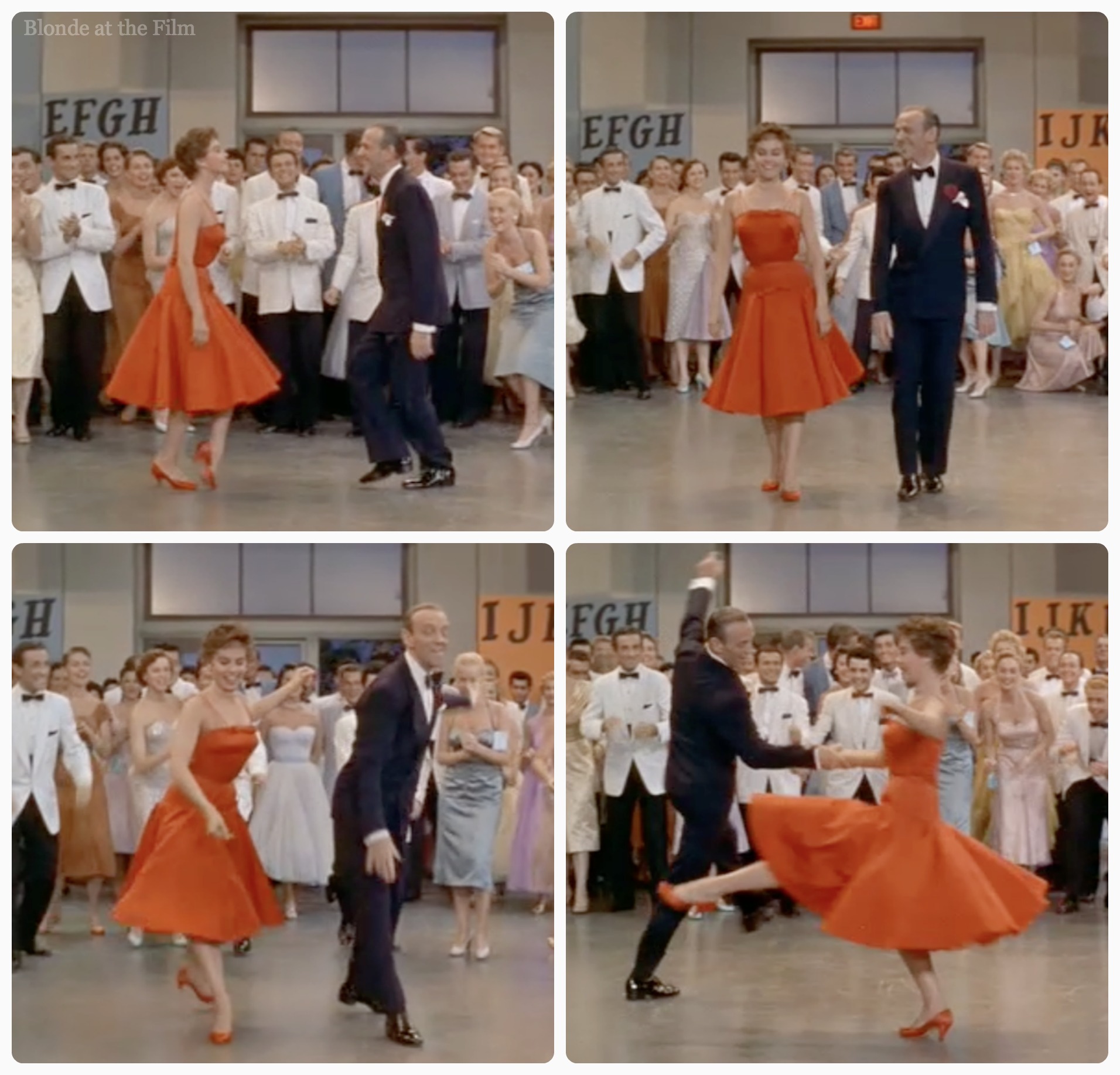 Now for some production notes: Astaire is famous for being a perfectionist, which could make him a difficult partner. Caron didn’t have Astaire’s perfect rhythm and timing (did anyone?), and occasionally he would get frustrated and ask her to actually listen to the music so she would stay on rhythm…