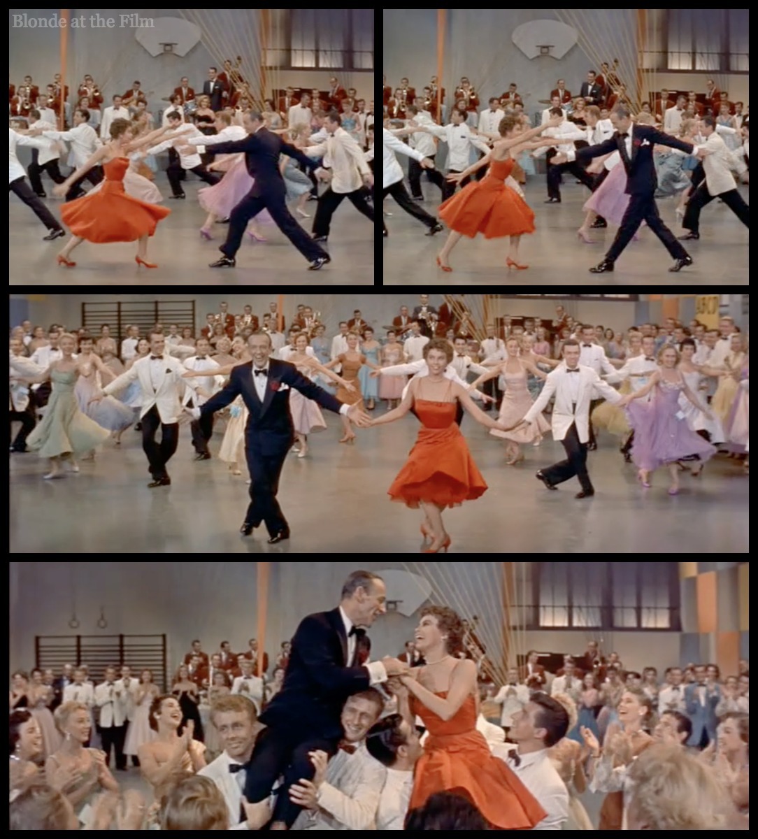 Once he and Julie are dancing together, the once packed floor becomes very empty. No, the students don’t flee in disgust at the old guy dancing their hip, youthful dance. They stop dancing to watch, and they seem to love it. (Duh, it’s Fred Astaire and Leslie Caron, even if they are doing the Sluefoot.)