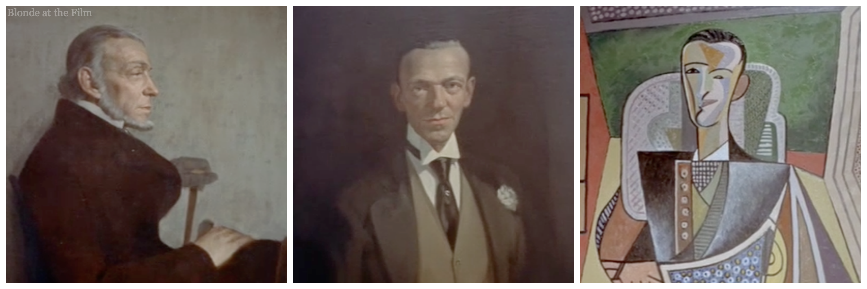 His grandfather was painted by Whistler, his father by Sargent, and Jervis by Picasso. Director Jean Negulesco painted the Picasso-style portrait himself. The portraits are a quick visual way to show 1. the family has been rich and important for a while 2. the family resemblance is terrifying and funny, and 3. the current Jervis is into modern stuff.