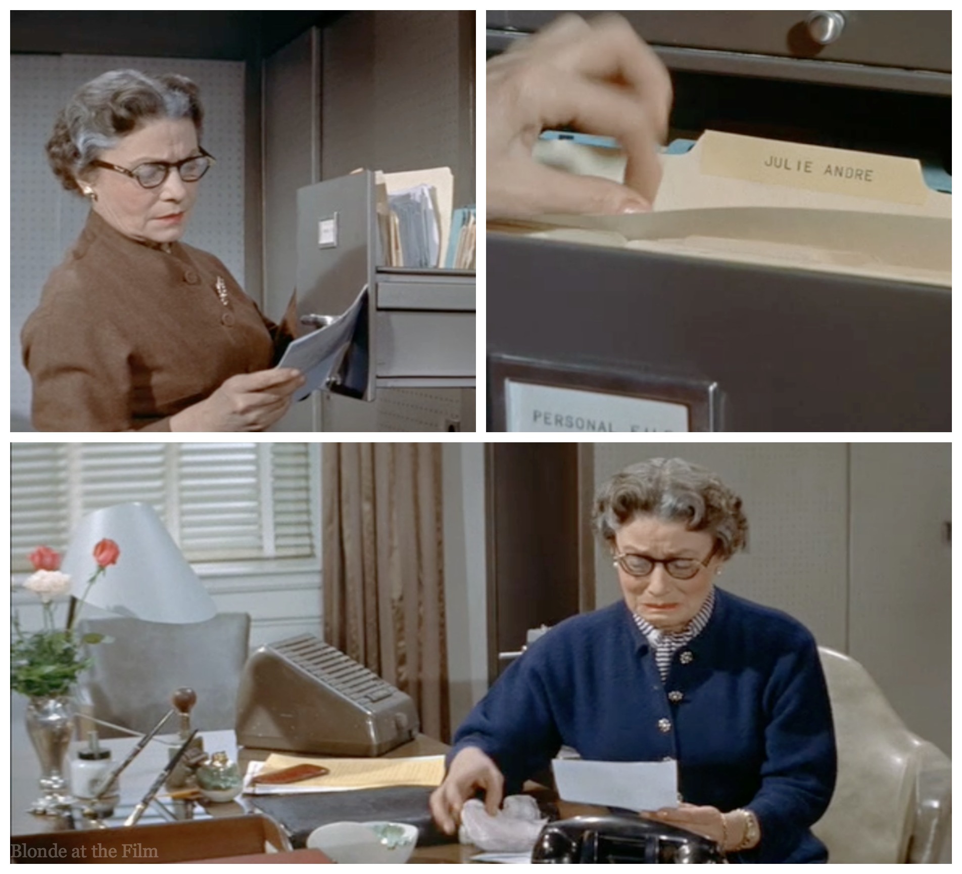 Ms. Pritchard is played by Thelma Ritter, who steals the show as the only “human” in his office. She reads all of Julie’s letters, sometimes cries over them, and she tries to get Griggs interested in them, too. She thinks it’s disgraceful that Jervis won’t even read the letters that Julie so devotedly writes.