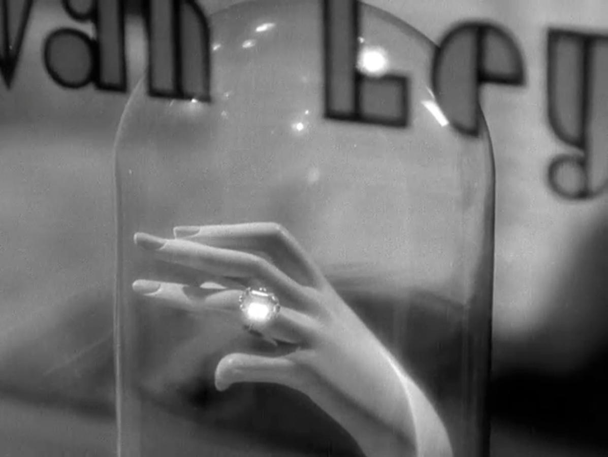 She’s lost her hat.Regi is a practical, fast-talkin’ dame who works as a manicurist in the Savoy-Carleton Hotel. She doesn’t want to work as a manicurist–she’d prefer to find a rich husband and give up frenzied subway journeys and 9-5 days altogether. On her way through the lobby, she pauses briefly at a shop’s display of an enormous emerald cut diamond ring. We know what’s on her mind…