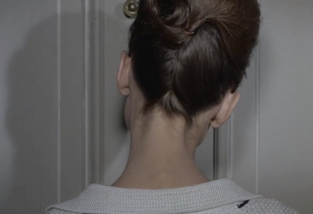 She retires to her room and we get this nice shot of her updo.