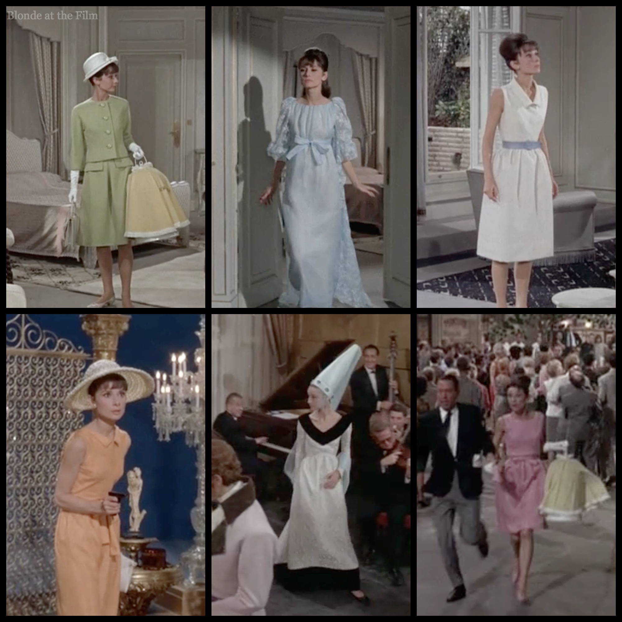 Ever since Sabrina (1954), Givenchy had designed Hepburn’s costumes and her personal wardrobe, including her clothes for Funny Face, How to Steal a Million, and Charade.  He even created a scent for her exclusive use!  On this film, Hepburn demanded that he receive, besides the normal costume credit, an onscreen “perfume” credit!  Seems pretty silly, but there it is.