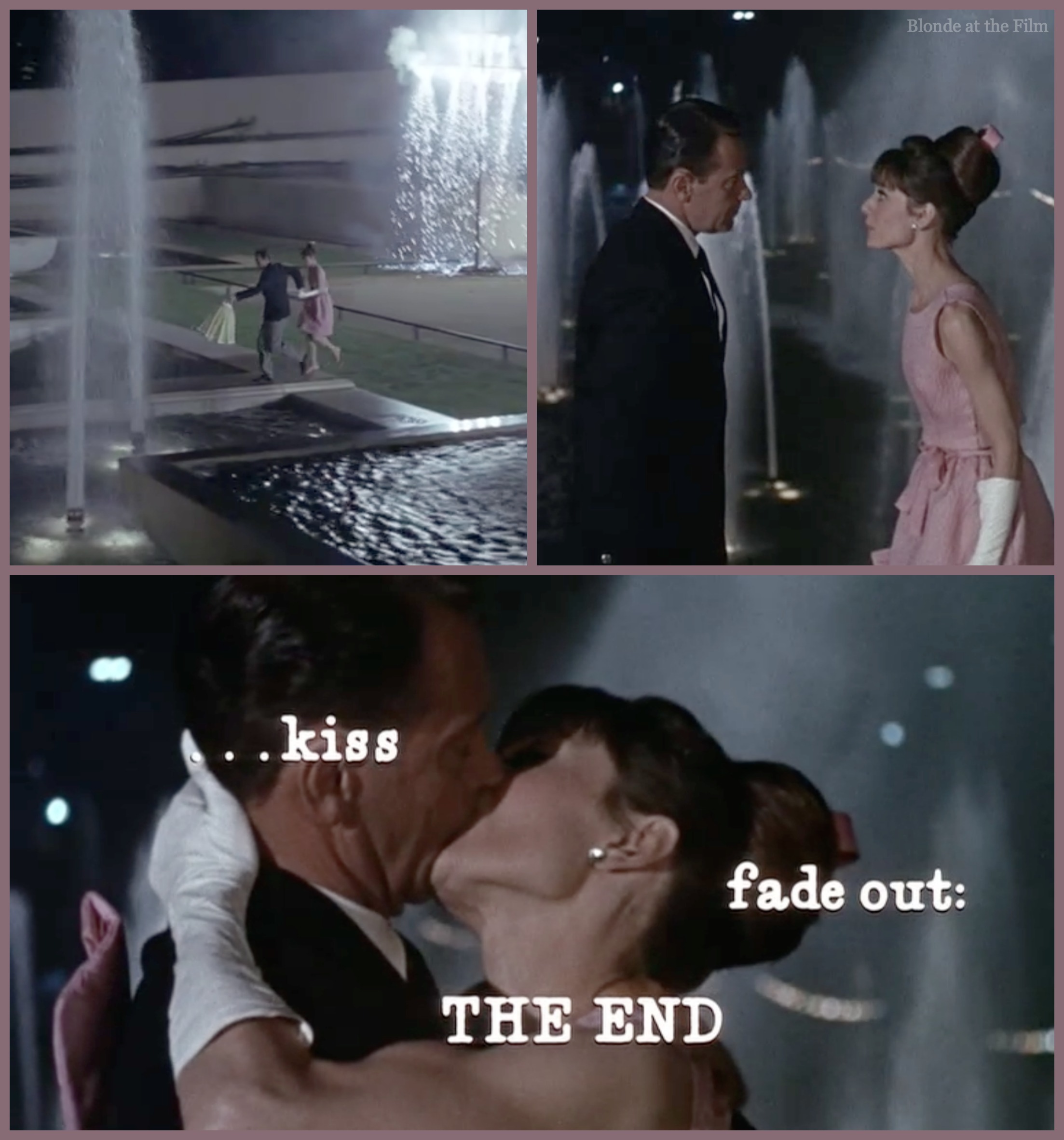 Who cares?  Hepburn is in a pink party dress with a cute bow in her hair, and there are fireworks and fountains on Bastille Day, plus a final meta-moment:
