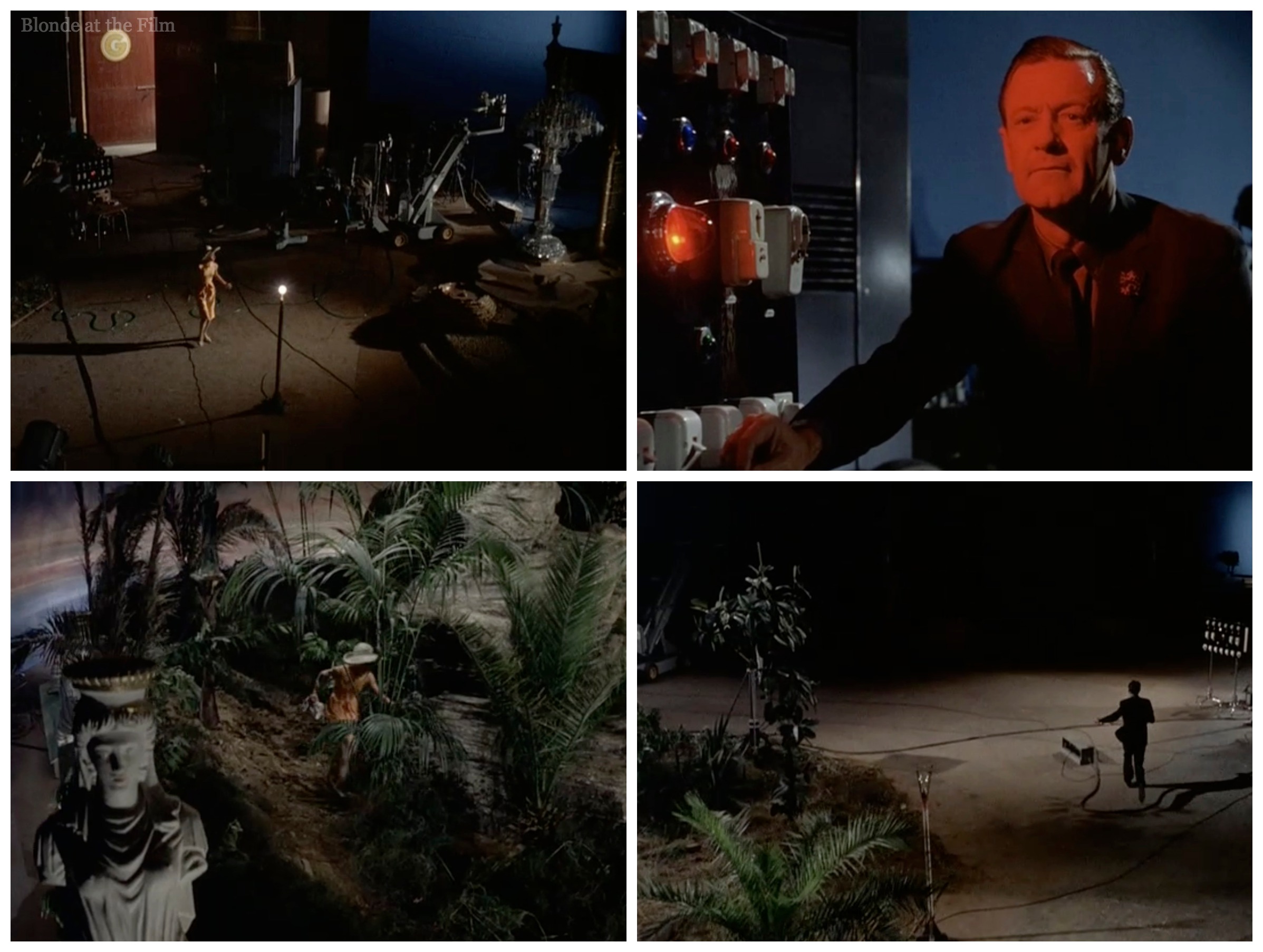 Rick takes Gabby to a movie studio. His plan is to steal all the prints of a just finished film called “The Girl Who Stole the Eiffel Tower” and then blackmail the producer.  It’s all going swimmingly until Gabby makes a mistake and Richard realizes that she’s working with the police.  Off they go on a chase through the backlot.  It reminds me of the “You Were Meant for Me” number in Singin’ in the Rain (1952) with its use of movie magic on the backlot, but without the dancing.