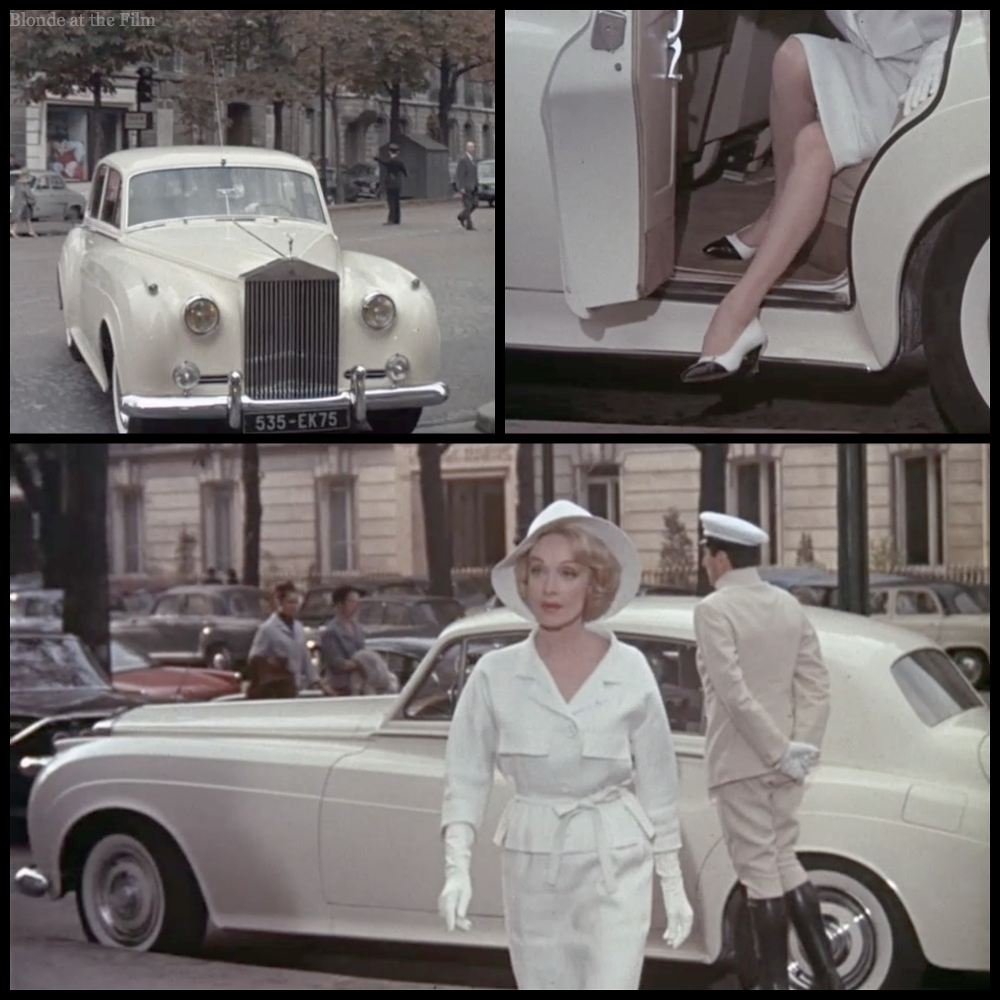 Why, it’s actually Marlene Dietrich!  It’s just one of the uncredited cameos sprinkled throughout the movie.  According to Holden’s autobiography, in a scene which didn’t make it into the movie, Dietrich strolled into Dior and picked out a white ermine coat.  After she finished her half day of work, she asked to keep the coat.  George Axelrod, who also produced the film, assumed he’d be able to refuse that request, no problem.  He went to talk to Dietrich, and came back a little while later, very pale, to announce that she was keeping the coat…and the car.