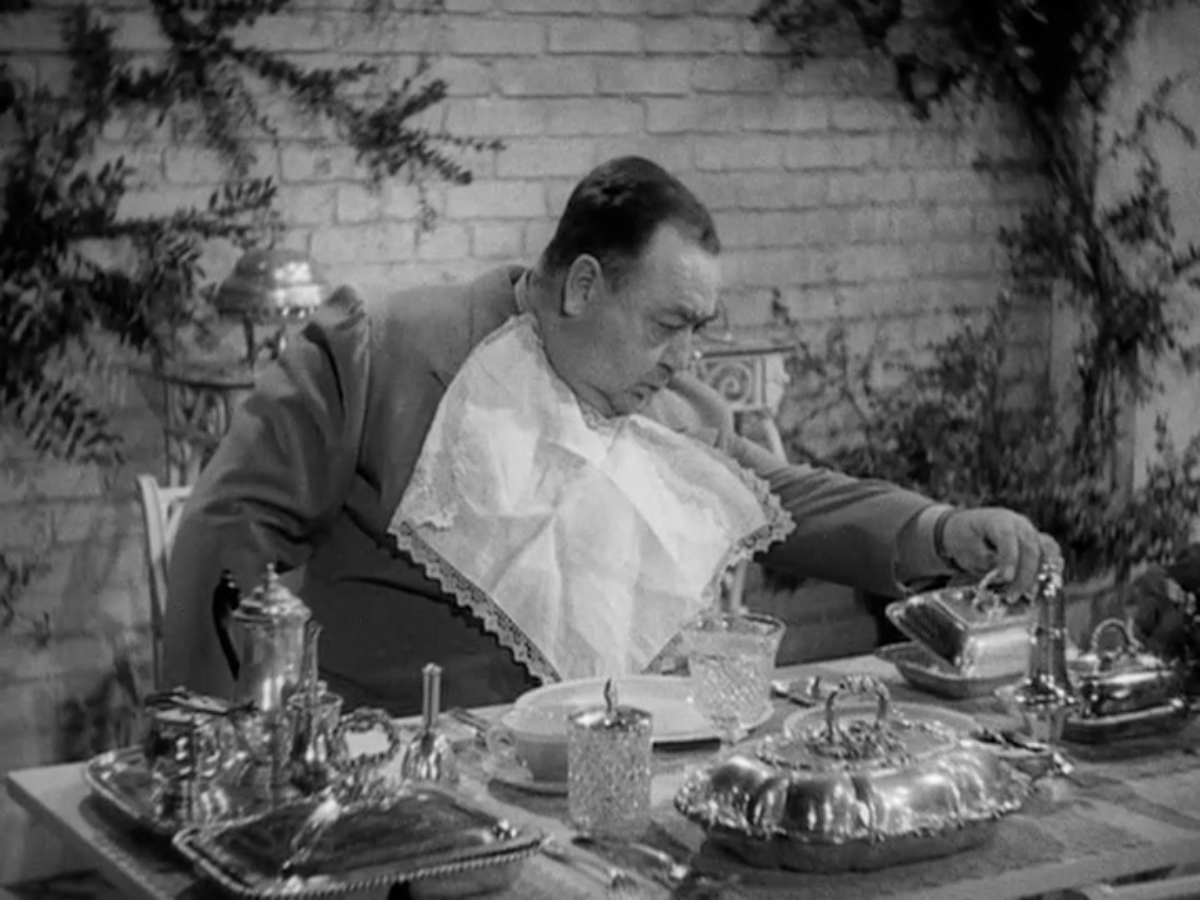 There’s a comedic interlude with Eugene Pallette as Hopsi’s father, who has no idea that he’s hosting a party that evening, and is very distressed to find that the immense household staff has forgotten his breakfast in their frenzy of party preparation: