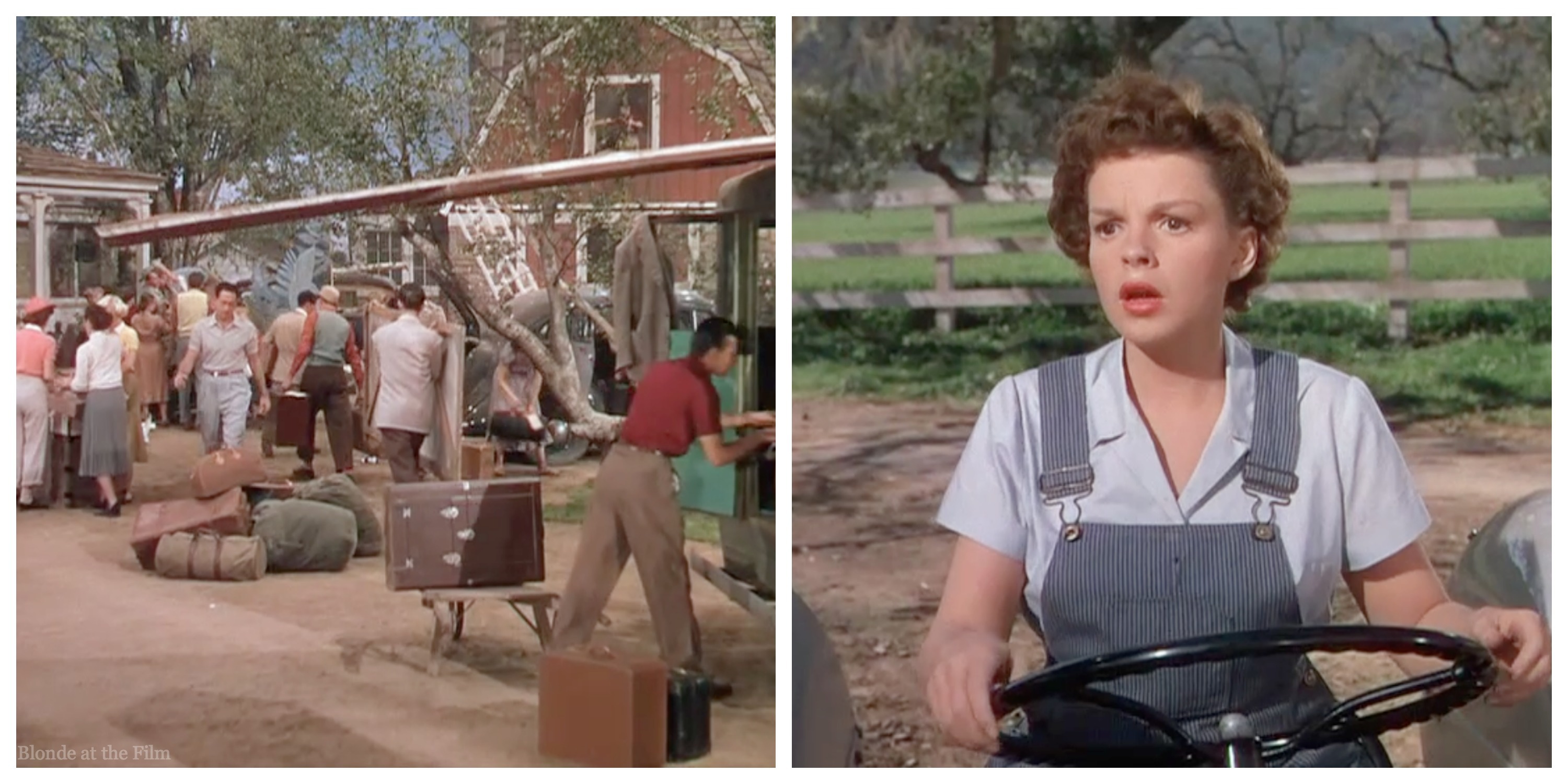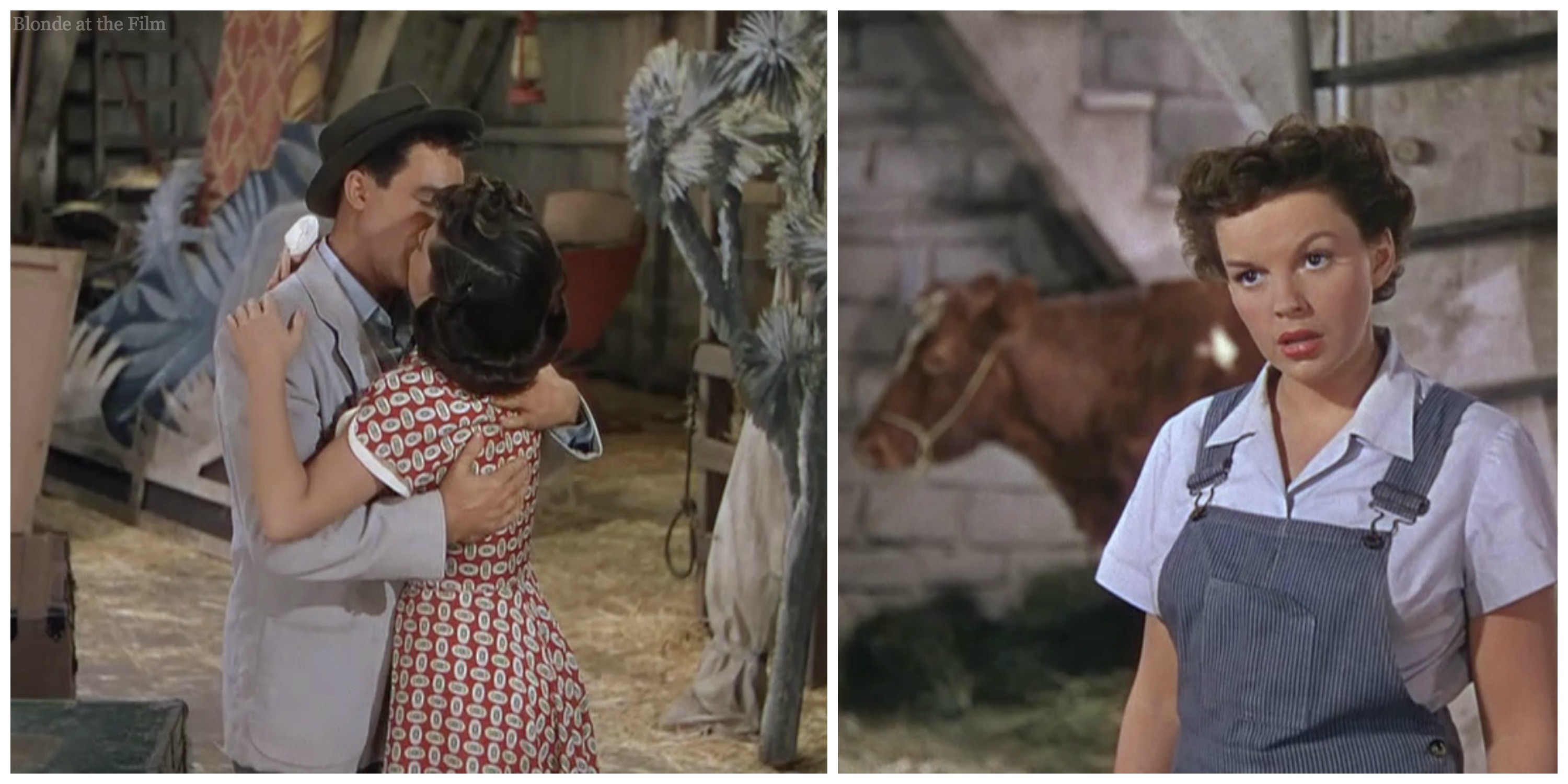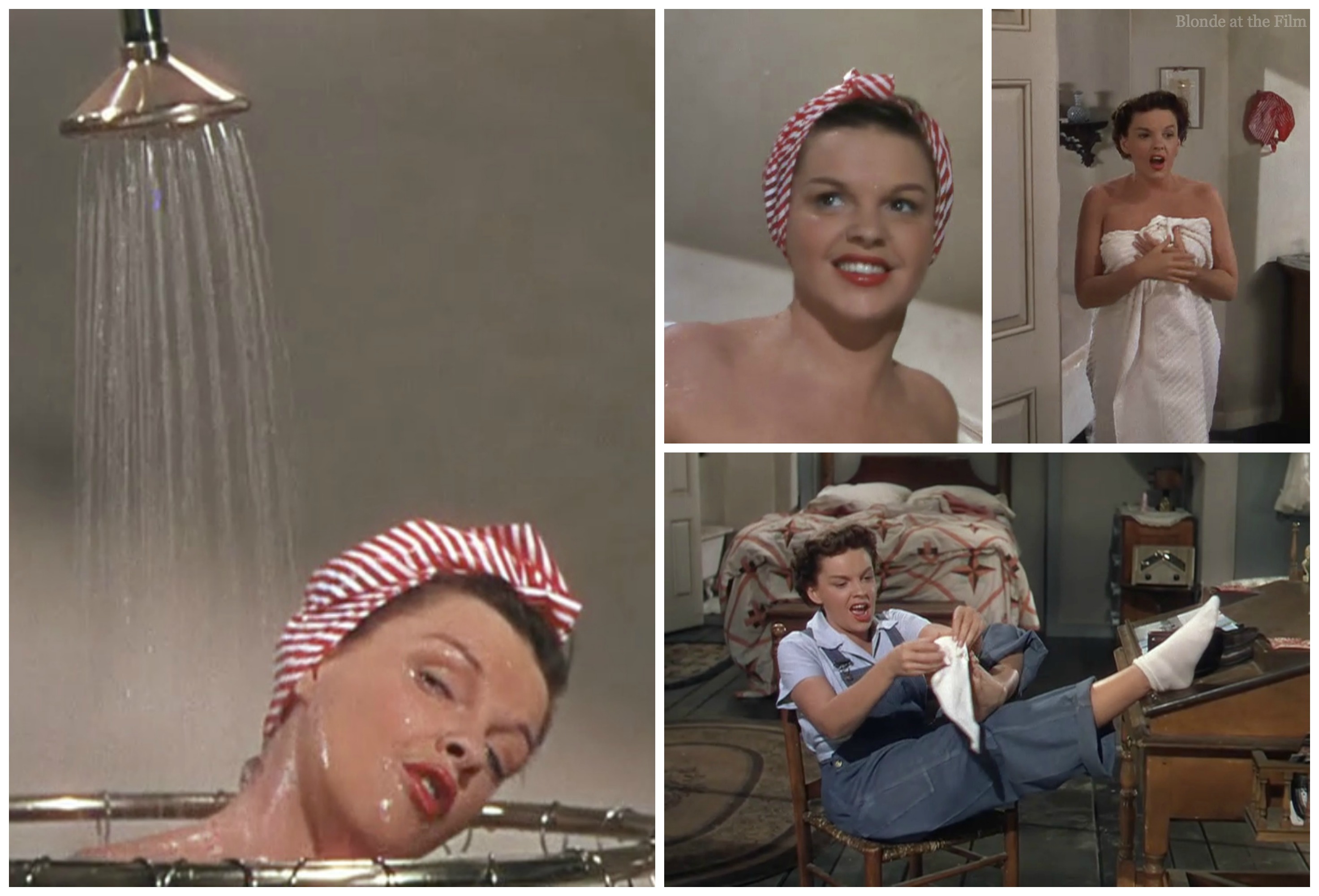 The movie opens with a swooping crane shot through the barnyard and up to the second floor of the farmhouse. The camera finds Jane (Garland) singing in the shower. It’s a very unglamorous first appearance…she showers, she puts on overalls, she makes her bed.