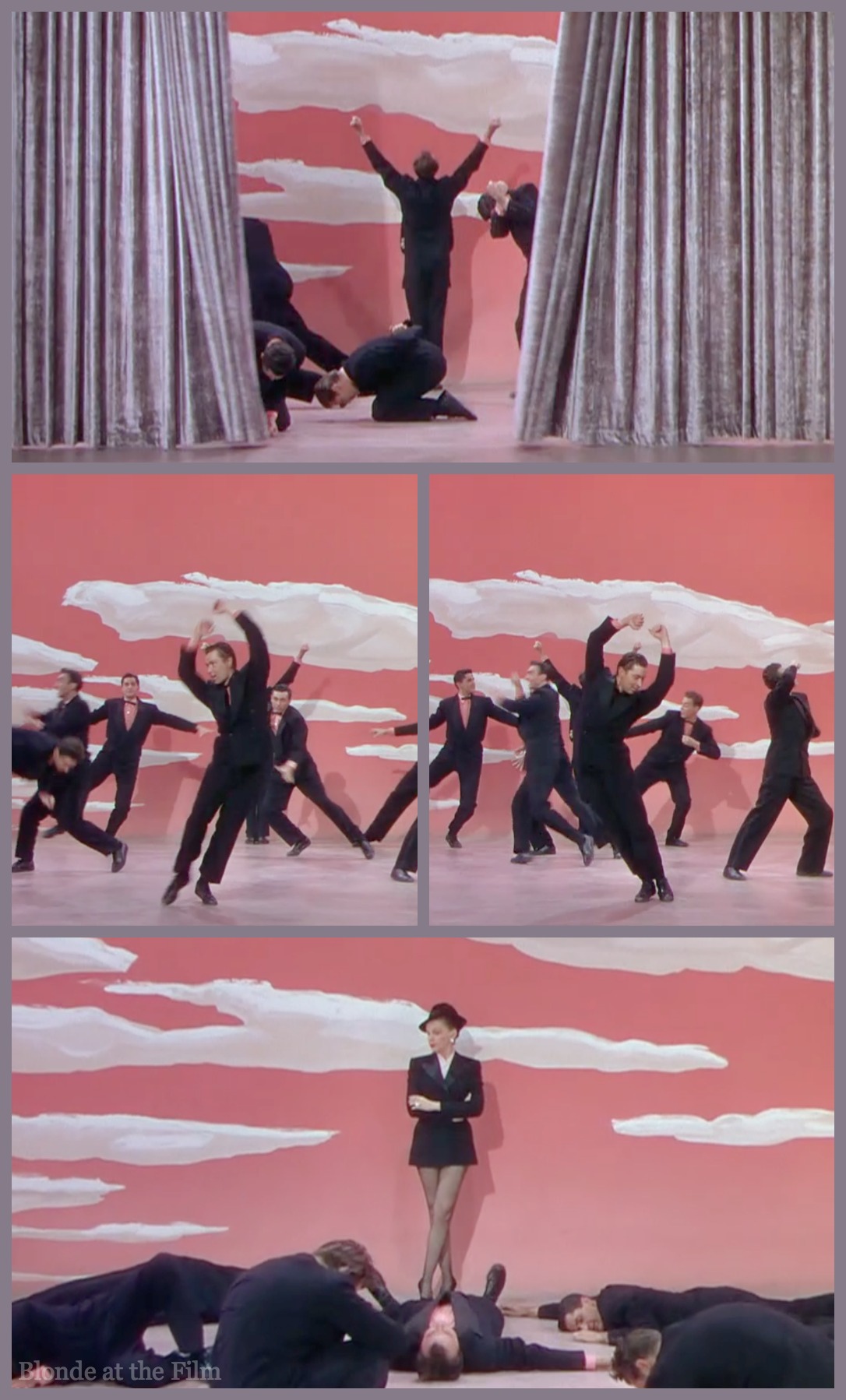 The weight loss made people think that this number had been taken from MGM’s archives. They didn’t believe that Garland had filmed it for this movie because she looks so different here than in the rest of the film. Also, her costume fed these rumors, because she had first worn it for a number in Easter Parade called “Mr. Monotony,” but they hadn’t used it in the film. It survives though; you can watch it here. With the weight loss and her now-iconic tuxedo jacket and fedora, people thought this was old footage.