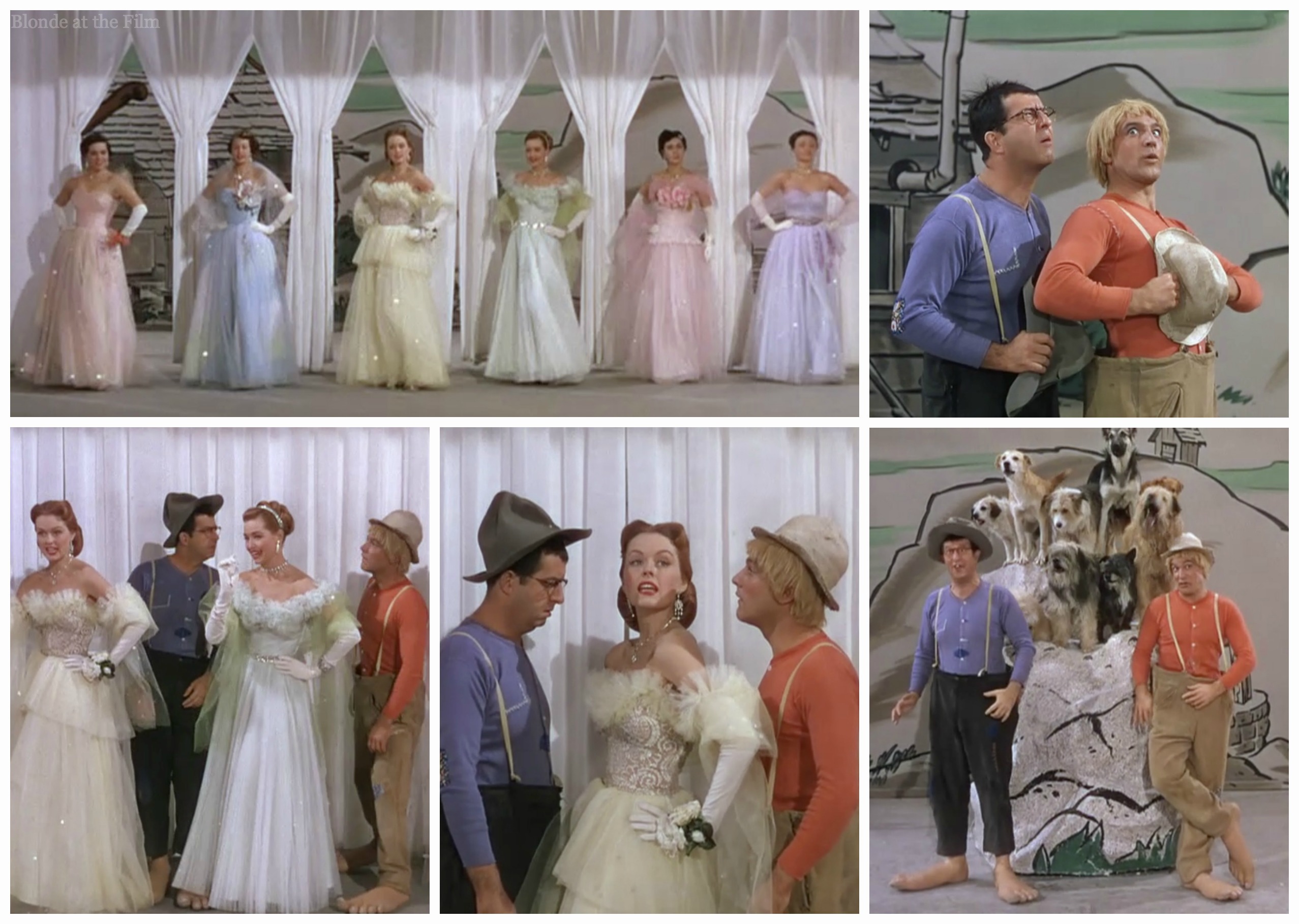 We’ve got this weird one called “Heavenly Music” that begins with lovely ladies in lovely sparkly dresses. It starts out almost like “Beautiful Girls” from Singin’ in the Rain, or “The Girl I Love is on a Magazine Cover” from Easter Paradebut things go sideways pretty quickly.  Here come Herb and Joe as hillbillies with hobbit feet, and eventually the lovely ladies go away and we’re left with howling dogs, trick suspenders, and blacked out teeth. You can watch it here.