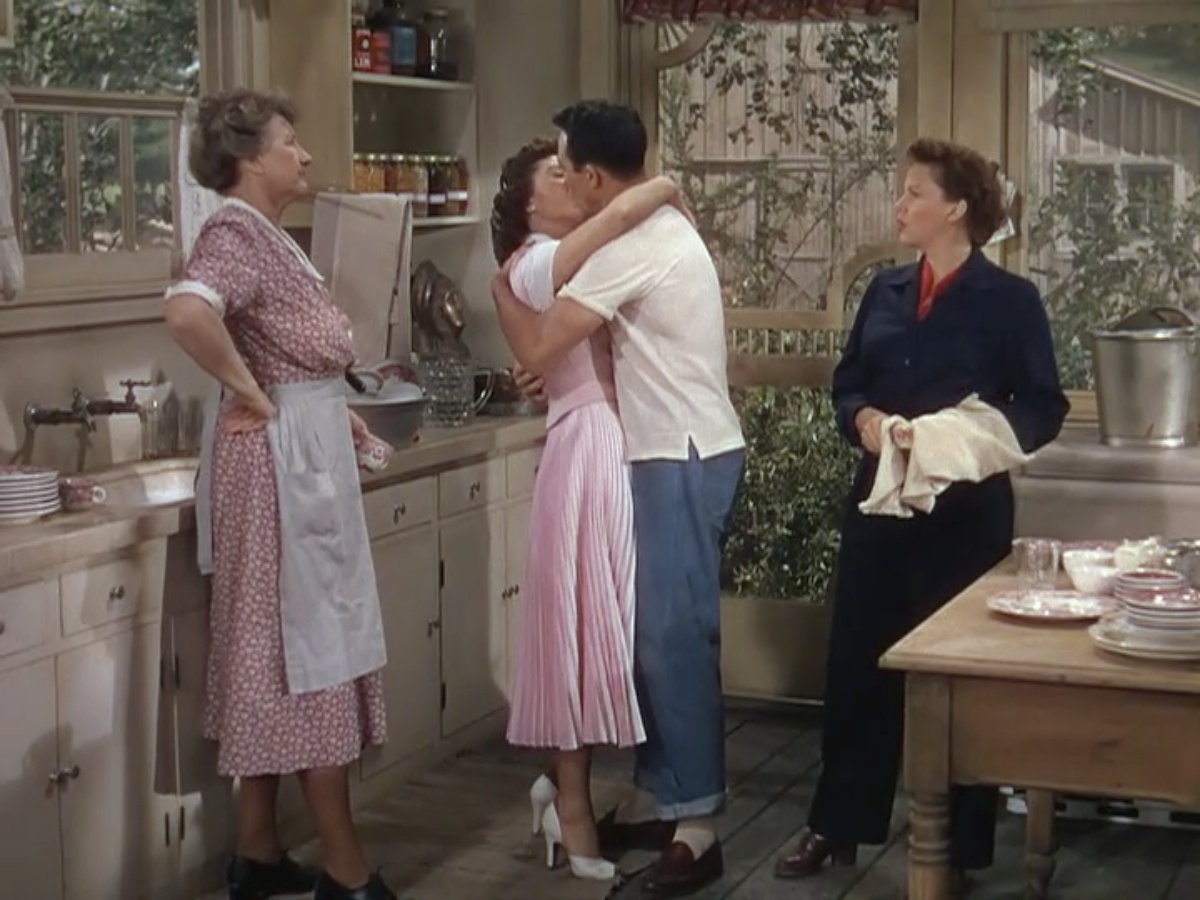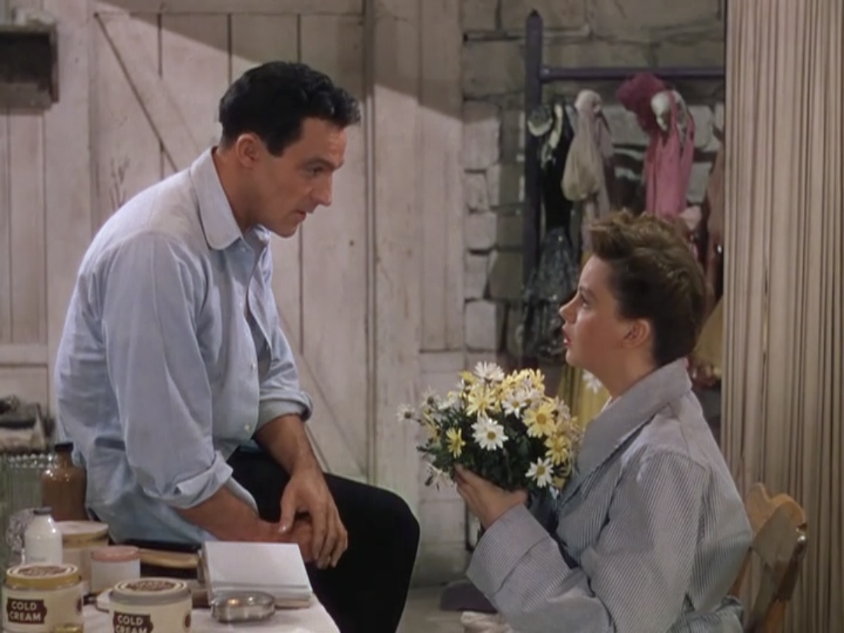 As you may have guessed, and as the costumes have been telling us this whole time, Joe and Jane develop feelings for each other, but they’re conflicted. Abigail is being a real spoiled brat, and her co-star in the production (Hans Conried), is a real pompous jerk who thinks all this summer stock stuff is beneath him. He’s never had to rehearse amongst cows, before.