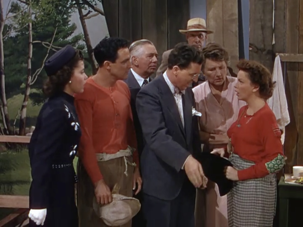 Abigail (Gloria De Haven) neglected to tell Jane that she had offered the farm to Joe’s theater group for summer stock. Jane is terribly confused, as she didn’t even know that Abigail was working as an actress! In fact, Jane thought that Abigail was coming home to help out with the farm. (Jane is the responsible sister, and Abigail is pretty flighty.)