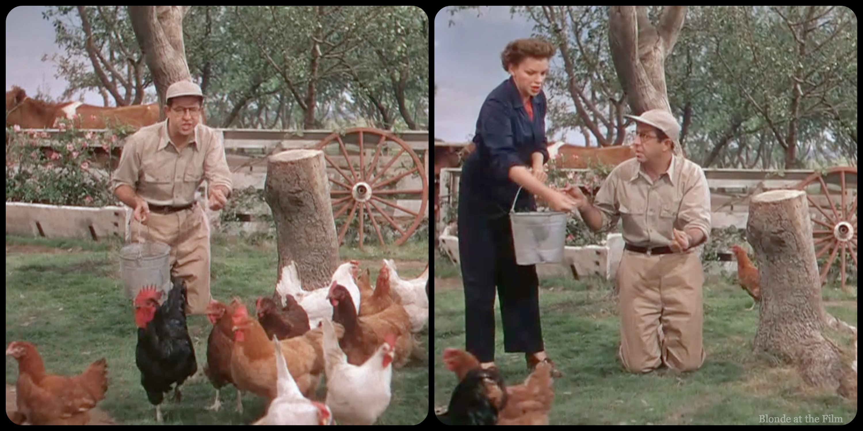 Nothing can compete with “Get Happy,” but Summer Stock‘s actual finale is a variation of “Howdy, Neighbor!” with “unusually stout” Judy Garland back in overalls. You can see why switching from “Get Happy” to this confused people: