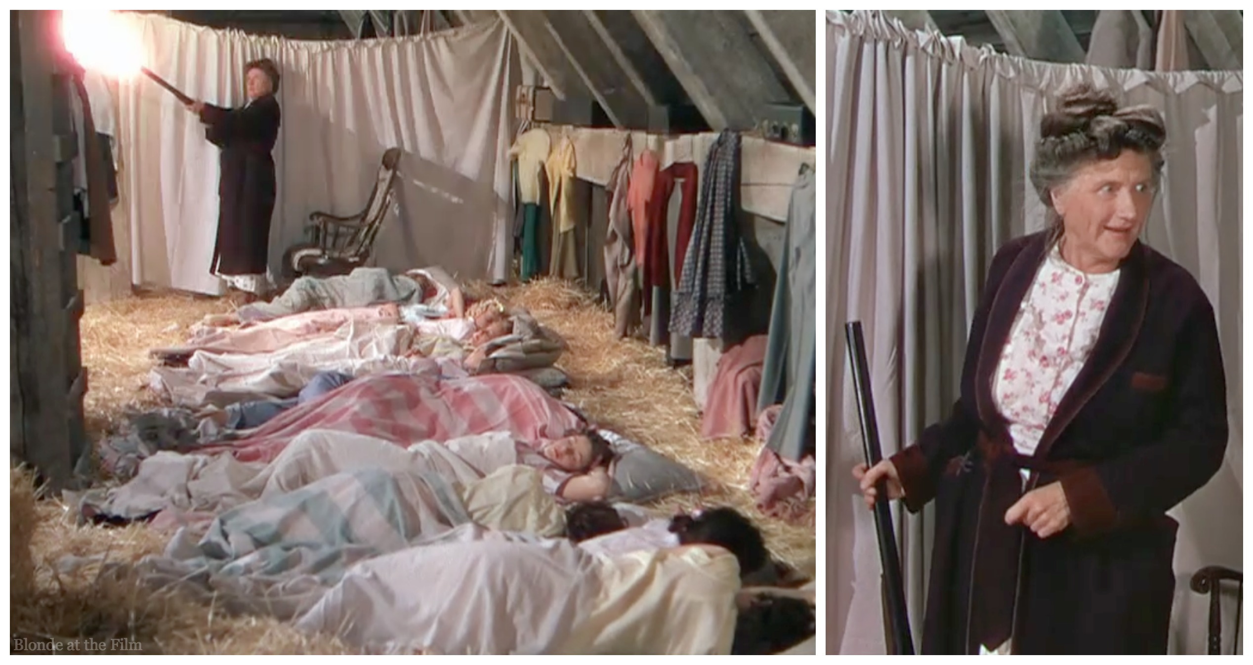 There’s a lovely scene in the barn when Jane shouts for everyone to be quiet so she can figure out what the hell is going on. She’s mostly hidden behind a piece of scenery, and even the cows are alarmed by her sudden shout: