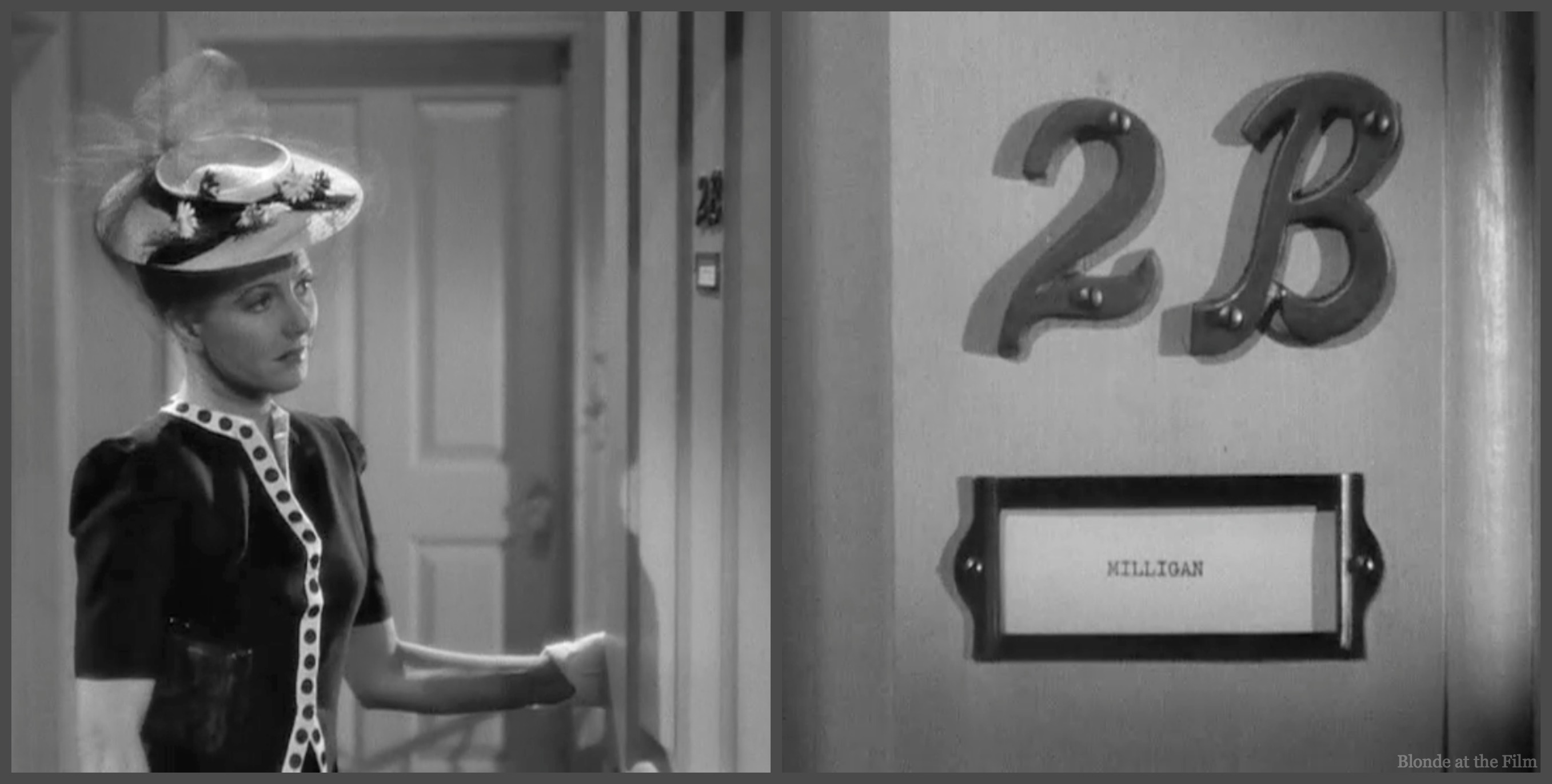The actual apartment dweller, Constance Milligan (Jean Arthur) arrives home to find Dingle waiting on her threshold.