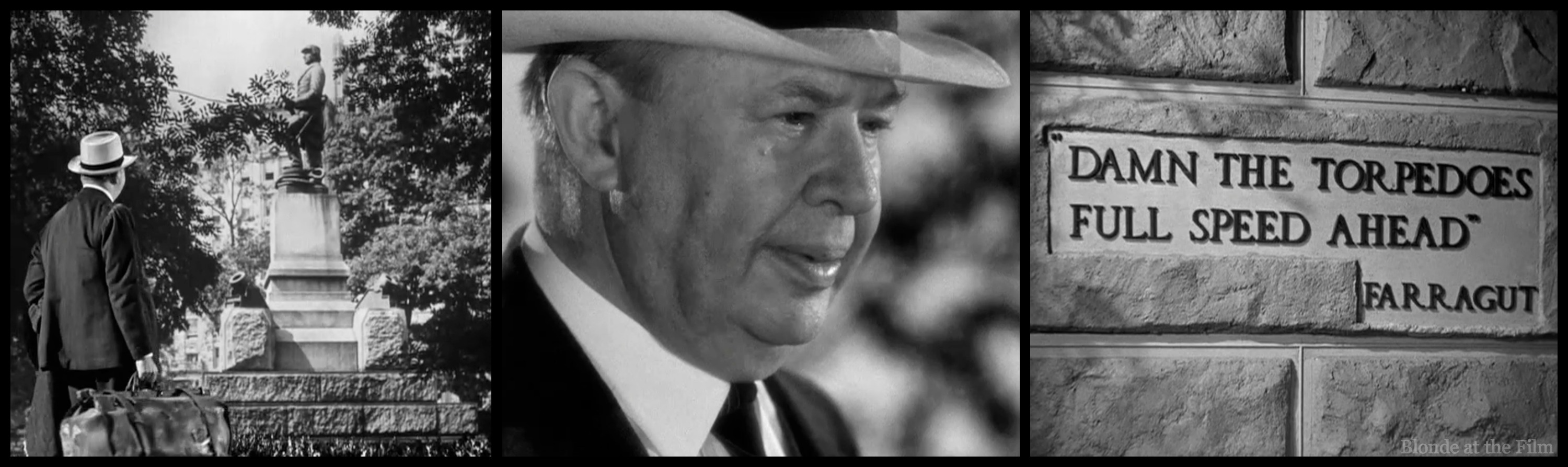 Benjamin Dingle (Coburn), a rather important millionaire with rather important friends, arrives at the hotel two days early, and the poor clerk has to inform him that his room won’t be available for another two days. This is a somewhat obvious state of affairs, but Dingle is annoyed. He leaves, pausing by a statue of Admiral Farragut, a Union admiral who “damned the torpedoes” at the Battle of Mobile Bay in the Civil War (though the story of the torpedoes is probably apocryphal).