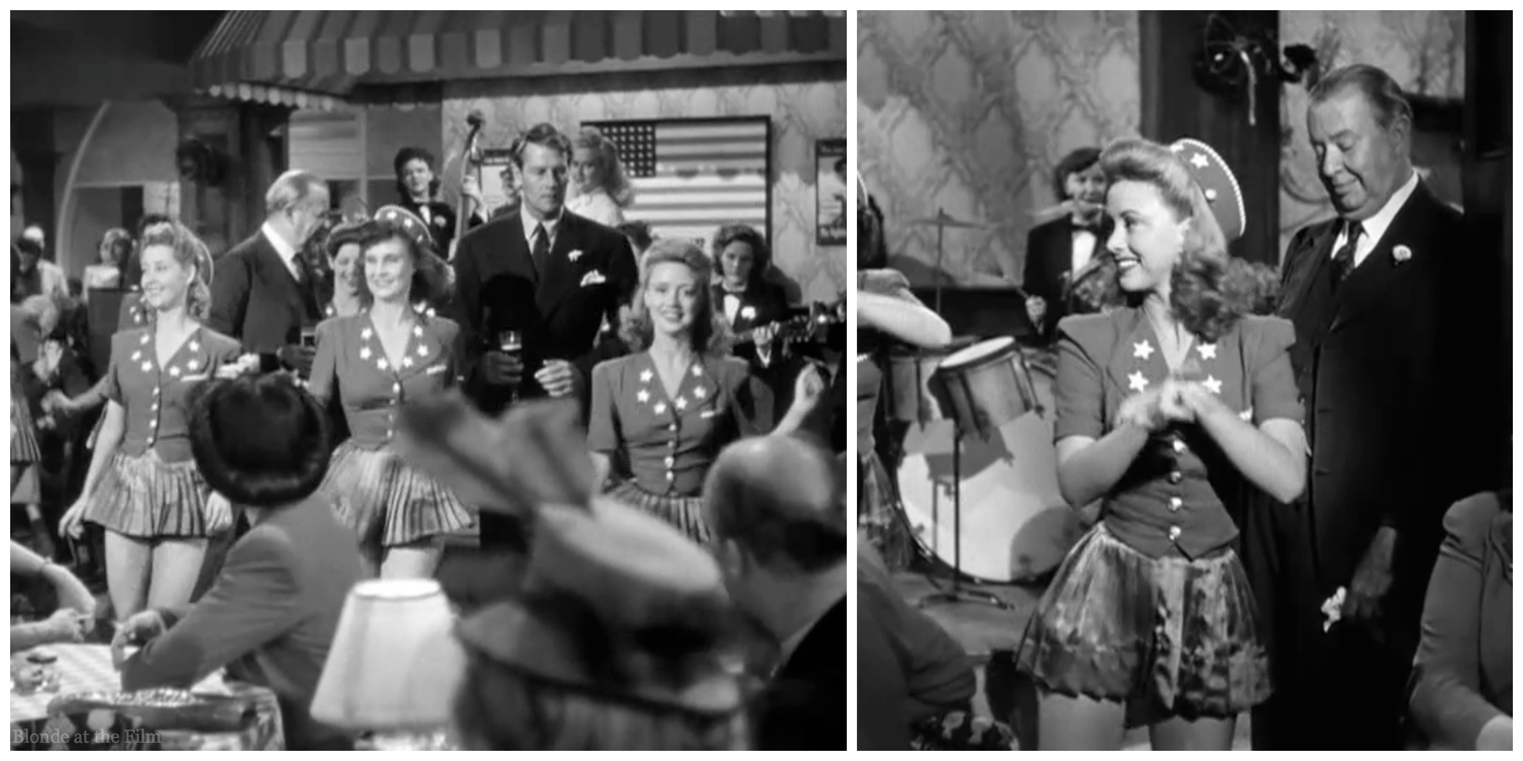 I forgot to ask you if you know what song is played when the dancers are on stage. I tried to research it but couldn’t come up with the answer. I did find out the name of the rumba song and the song played when Joe and Connie are going up the stairs after they are married is “Don’t Try to Steal the Sweetheart of a Soldier”. It is a song that was popular in World War I. Also, I love the travel case that Joe bought Connie. I thought it was so ideal since she seems to be the type of gal who would love something like that. And it was so cute of Joe to buy it because he knew she would love it. Thanks!