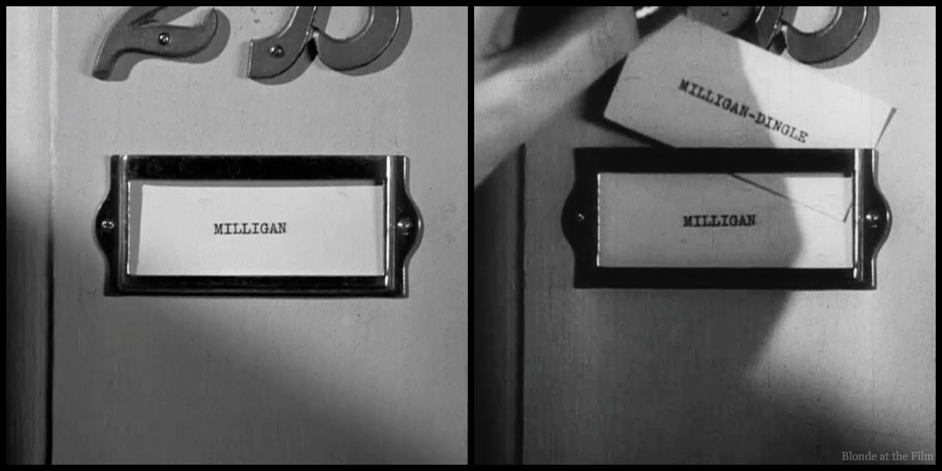 This starts another running gag throughout the movie. Dingle never gets over the “Bill” stuff, as you can see below, and Joe, confused by the apartment label, sometimes calls Dingle “Milligan.”