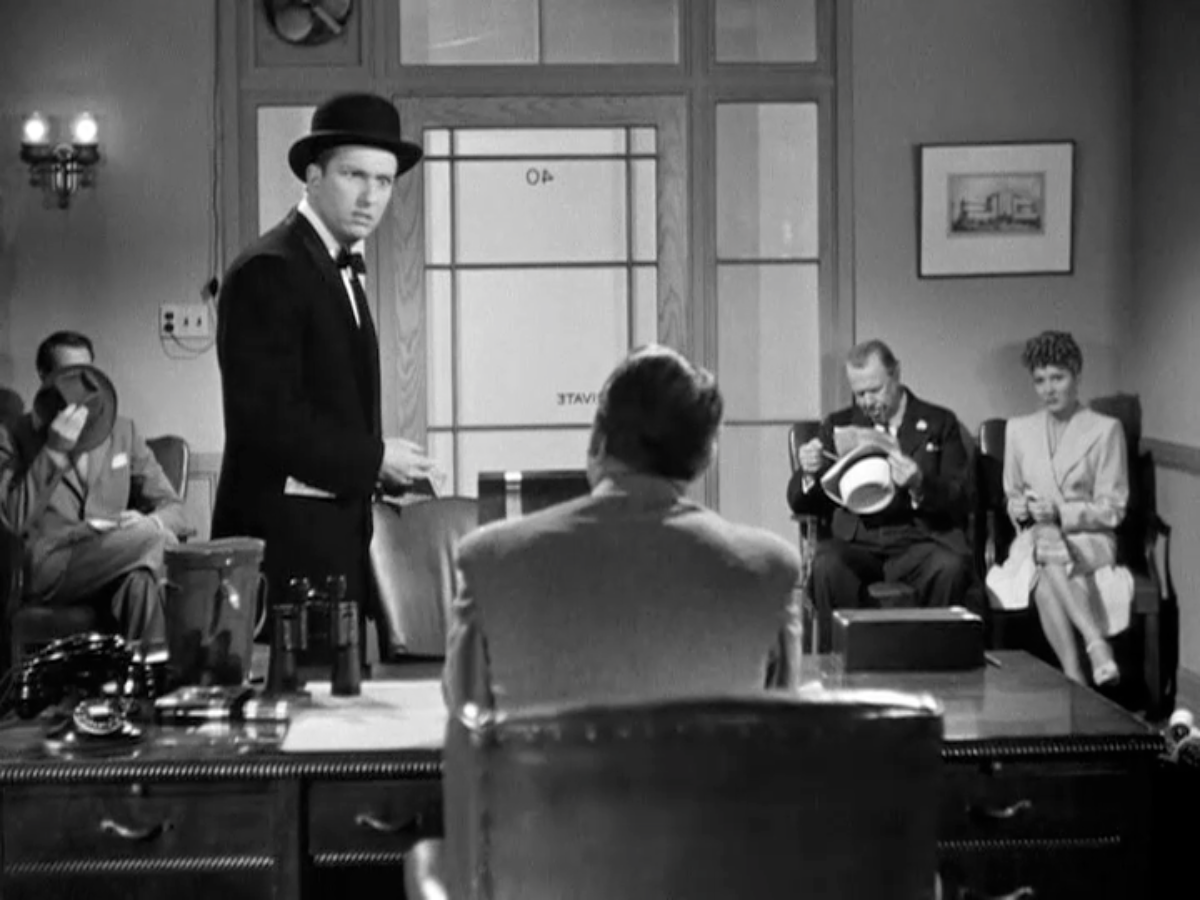 We briefly leave Connie’s apartment to accompany Dingle to a work luncheon about the housing shortage. He chuckles to himself when the pompous man in the hat who quotes statutes from memory turns out to be “Pendergast, Charles J.” I love that Pendergast (Richard Gaines) is the only man wearing a hat!