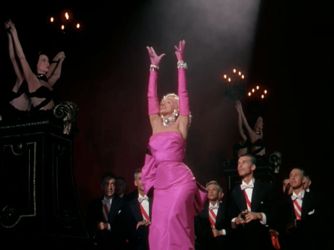 This is that famous film with Marilyn Monroe in her iconic role as gold-digging, smart-dumb-blonde Lorelei Lee. Although most people think of Monroe and “Diamonds are a Girl’s Best Friend” when they think of this movie, Jane Russell, who plays Monroe’s wise-cracking best friend Dorothy, was the bigger star at the time, and Monroe’s role was originally intended for Betty Grable. (Grable’s salary was $150,000 a picture, but rising star Monroe could be had at only $18,000, so she got the role.) Monroe and Russell are showgirls on a voyage to Paris; Monroe is looking for diamonds and millionaires, but Russell is out for love. Charles Coburn is excellent as a millionaire with a weakness for blondes, and the wonderful cast is directed by the legendary Howard Hawks. There are great musical numbers (a personal favorite is Russell’s “Ain’t There Anyone Here for Love” which she sings in the ship’s gym surrounded by Olympic athletes in flesh-colored briefs), funny set-pieces, beautiful costumes, and excellent performances. For a full review, check out my post on this film. Here’s the trailer.