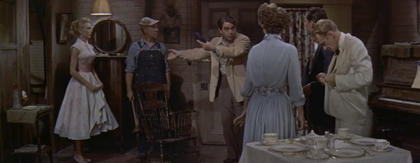 They’re eventually released and head home once again to finish packing. Guess who shows up? I love the way this scene is filmed. At first we see Bob, then Ruth’s disbelieving but hopeful face, before Bob heads straight for Eileen. He asks her about some of the events in Ruth’s story while Ruth watches from the background as her beloved becomes seemingly enchanted with her beautiful sister.
