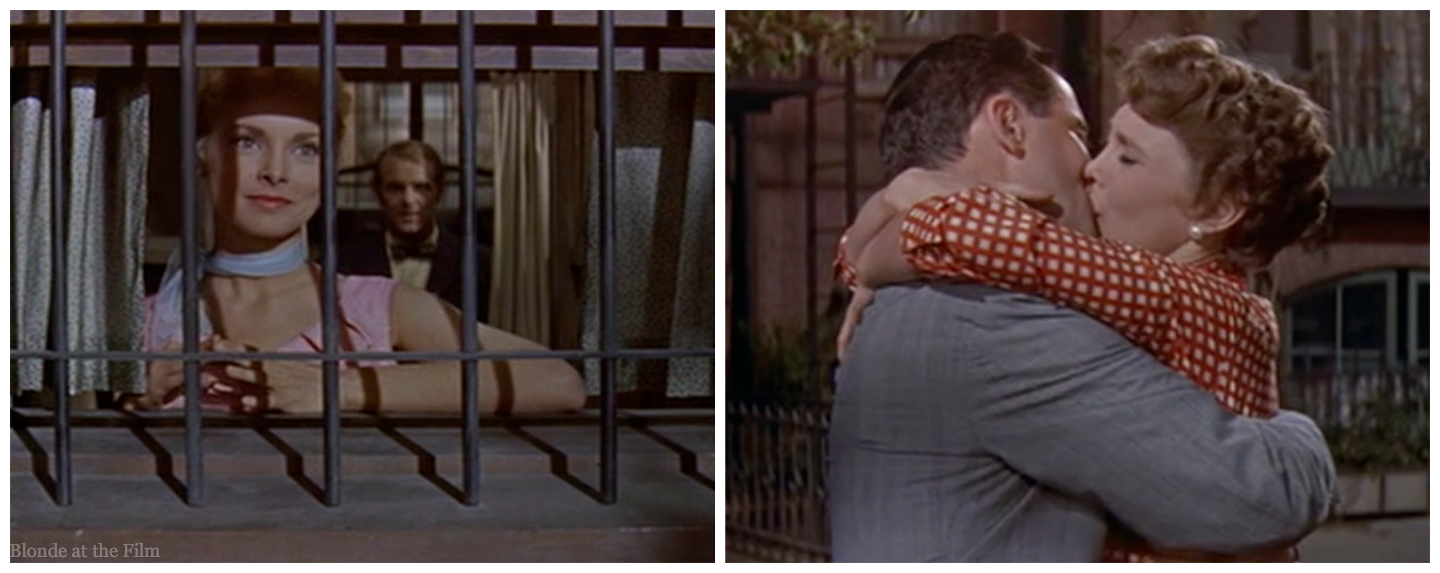 Meanwhile, Frank and Eileen have their own tender love scene in the apartment courtyard. Eileen leaves her hat outside, and Frank perches it on a tree branch and declares his love. He doesn’t know that Eileen is watching: