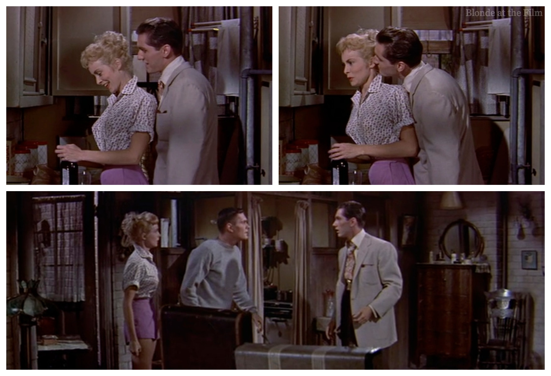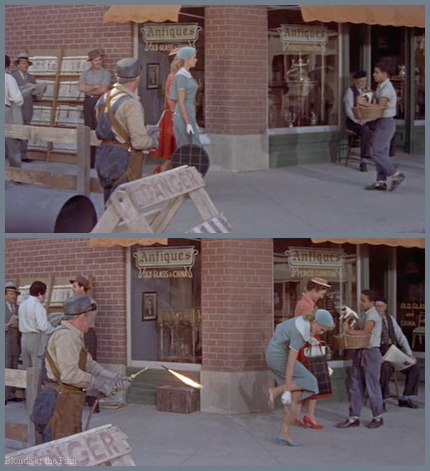 Chick likes what he sees of Eileen, and he just so happens to have a contact at the same audition. He offers to walk Eileen over to the theater, and she gratefully accepts. Then Frank offers to go, too; he knows Chick, and he knows that Chick will move in on Eileen given half the chance. And Frank has a crush on his pretty blond lunch buddy!