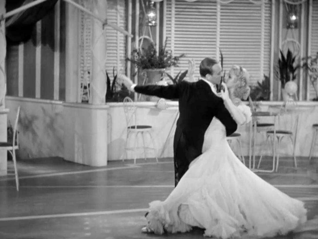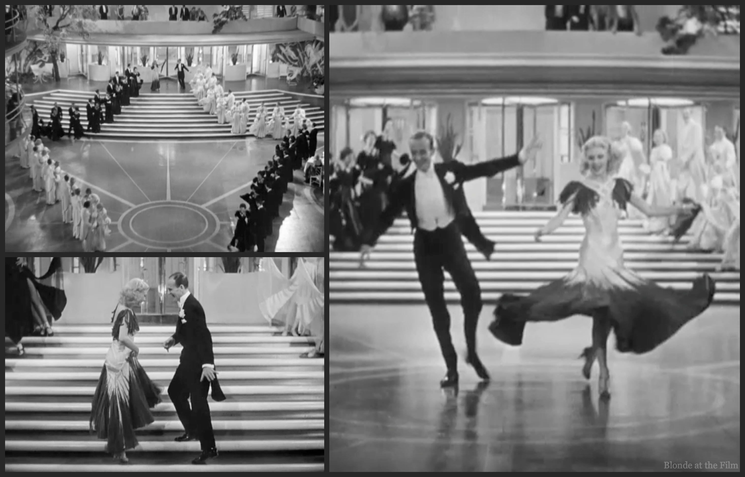 It is a joyous, “slightly hazardous” number requiring absolute precision in position and timing to avert a tumble. Although Astaire and Rogers’ movements look almost casual and spontaneous, if you watch carefully you see how incredibly close they are to falling at any moment, and how hard Astaire is gripping Rogers and vice versa as they waltz up and down the furniture! You can watch it here (start at 1:50).