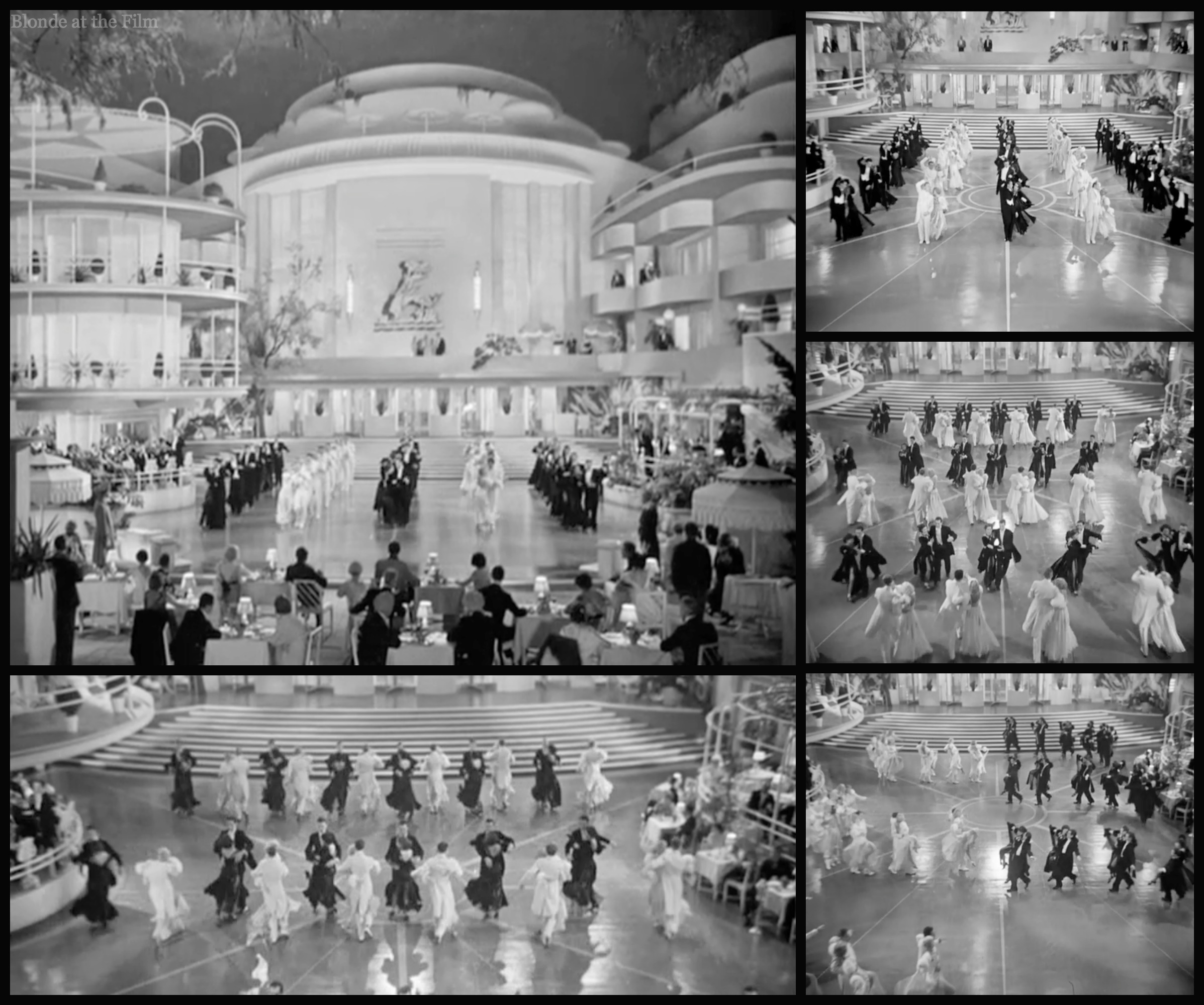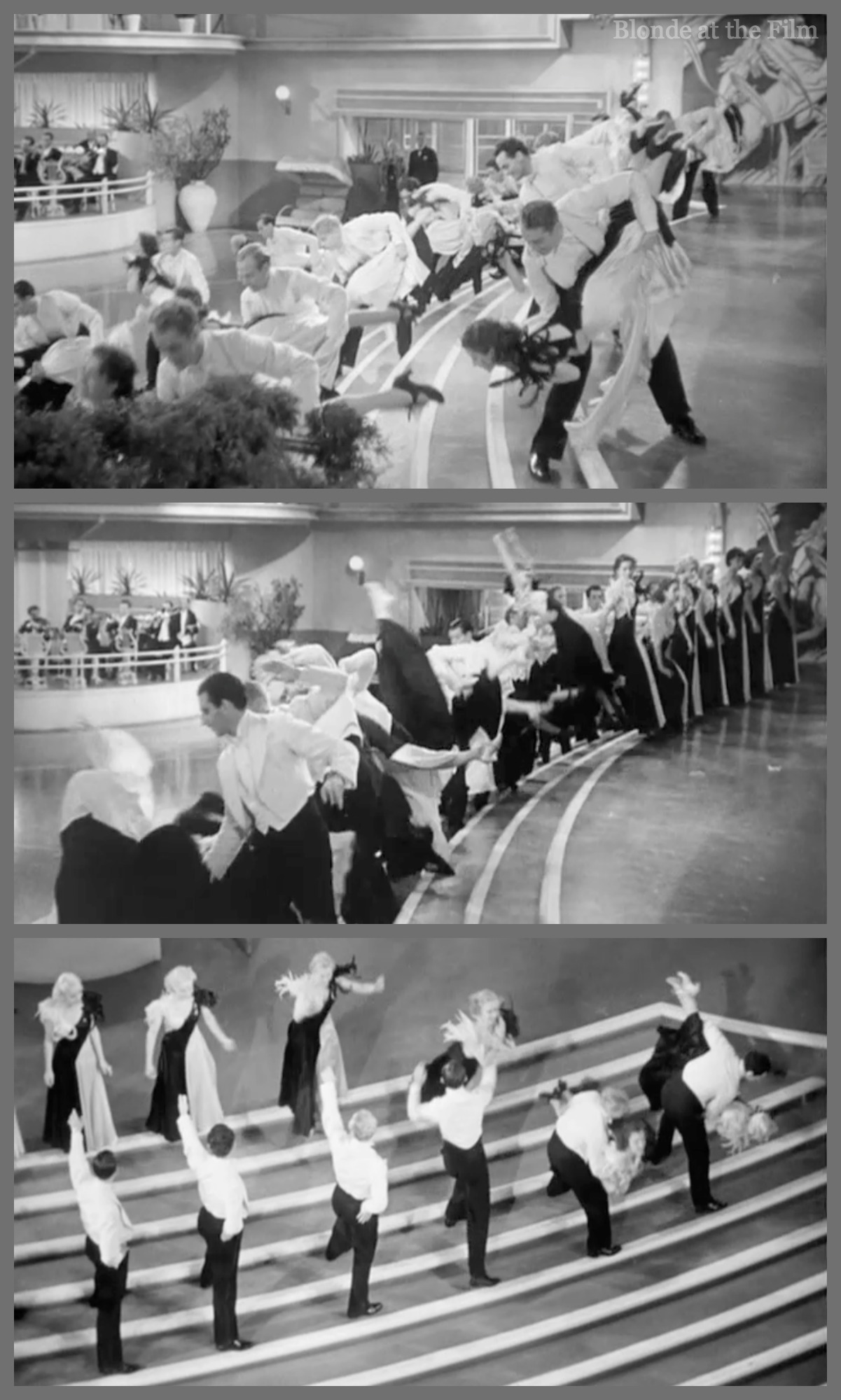 “The Continental” dance scene is a twelve minute extravaganza, so after Guy and Mimi finish this first section, the floor fills with black-and-white clad dancers in a grand kaleidoscopic spectacular on RKO’s great white set: