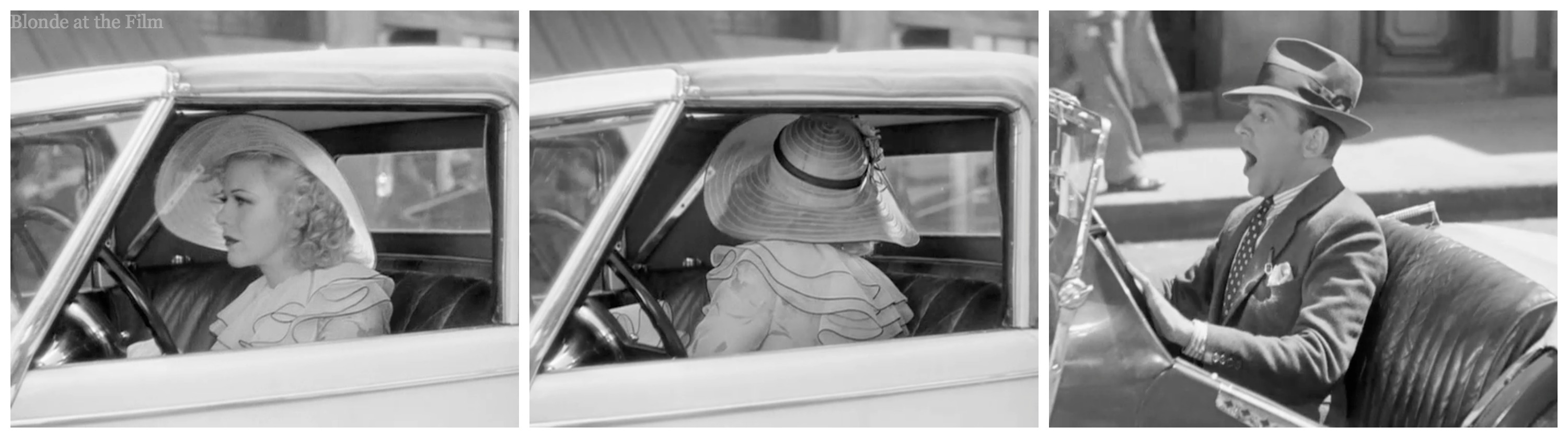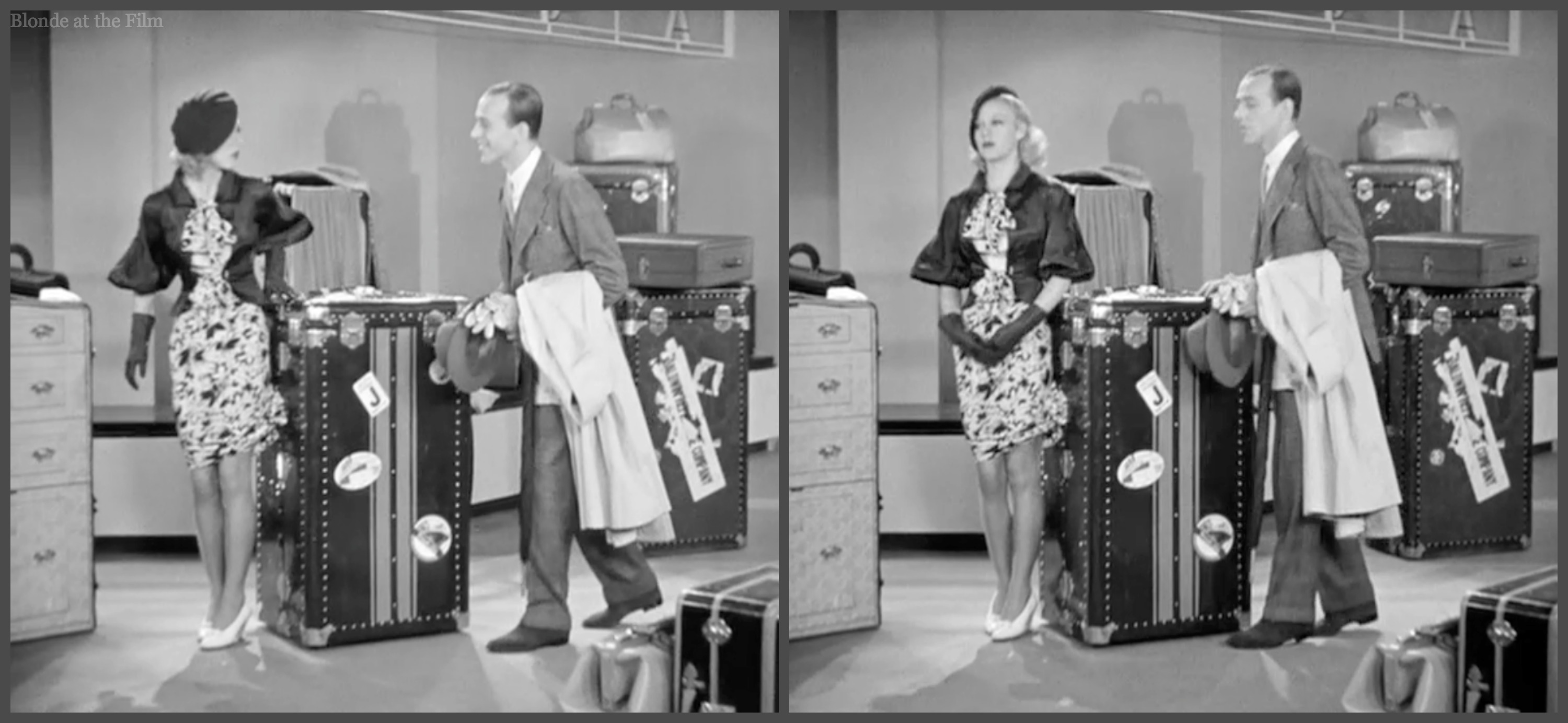 Her niece Mimi (Ginger Rogers) arrives and offers to help re-pack her trunks. As Mimi packs one trunk, her aunt mistakenly pulls a piece of Mimi’s long dress into a drawer, then shuts and locks the trunk before going off with the Customs officials to their office.