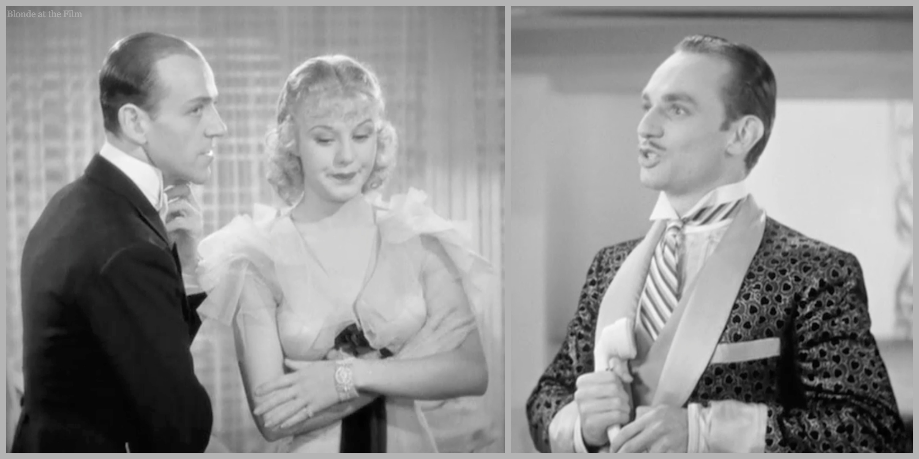 Fred Astaire plays famous dancer Guy Holden (one of the many times he would play a song-and-dance-man) who falls in love with Mimi Glossop (Ginger Rogers). She is less enthused. Mimi has a flighty Aunt Hortense (played by Alice Brady, the mother in My Man Godfrey), and Guy has a flighty best buddy Egbert (Edward Everett Horton). How perfectly 1930s are all these names?