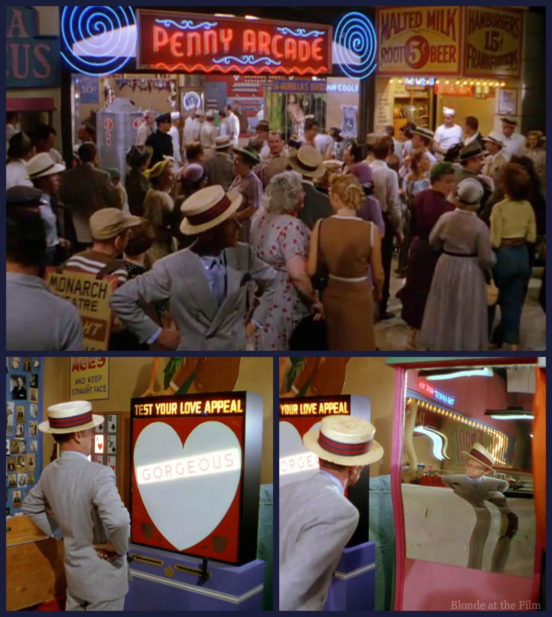 Tony gets sidetracked by a penny arcade, which provides the perfect place for one of Astaire’s masterful solo performances. It’s also a riot of color, lights, and oddities of the kind typically reserved for a fantastical dream ballet. It reminds me a little of the Fun House number in Hit the Deck (1955) when Russ Tamblyn and Debbie Reynolds go wild with trick mirrors and trampolines.