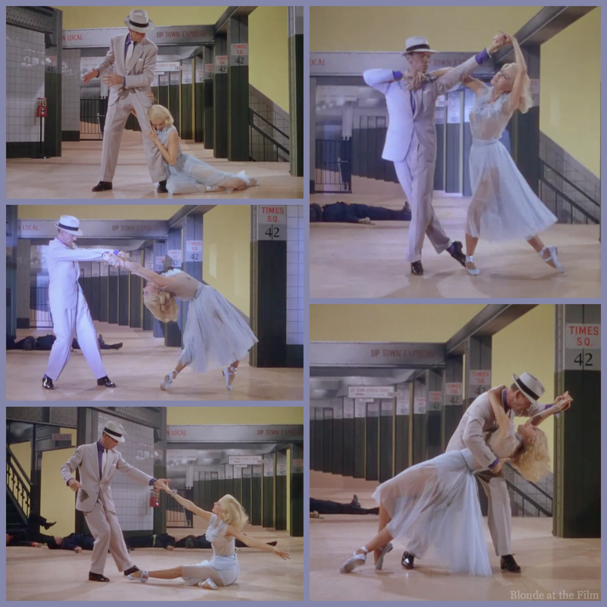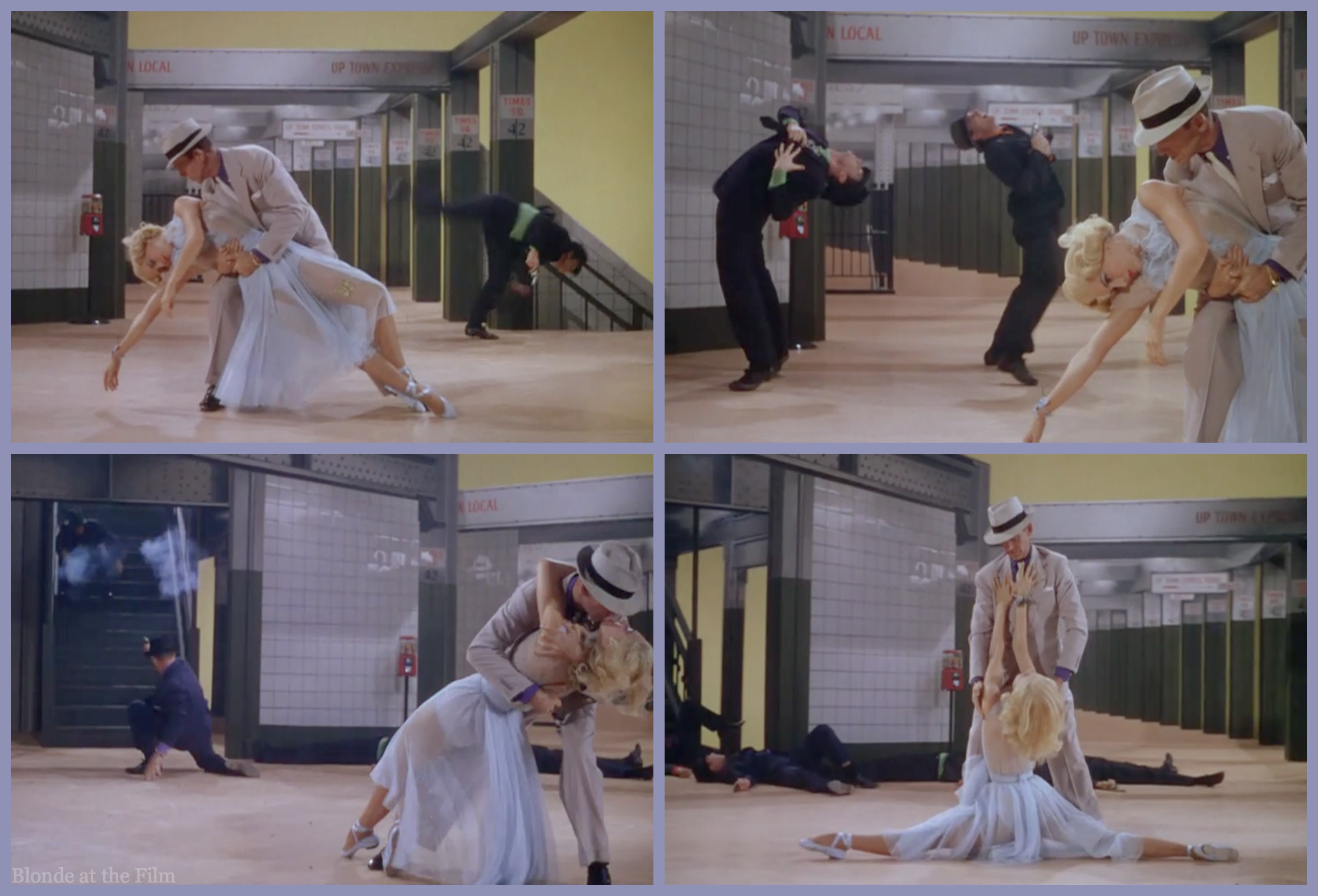 It’s not your typical duet; men vault into the station and shoot at each other in an athletic, stylized dance of gunfire. You can watch the “Girl Hunt Ballet” up to this dance here.