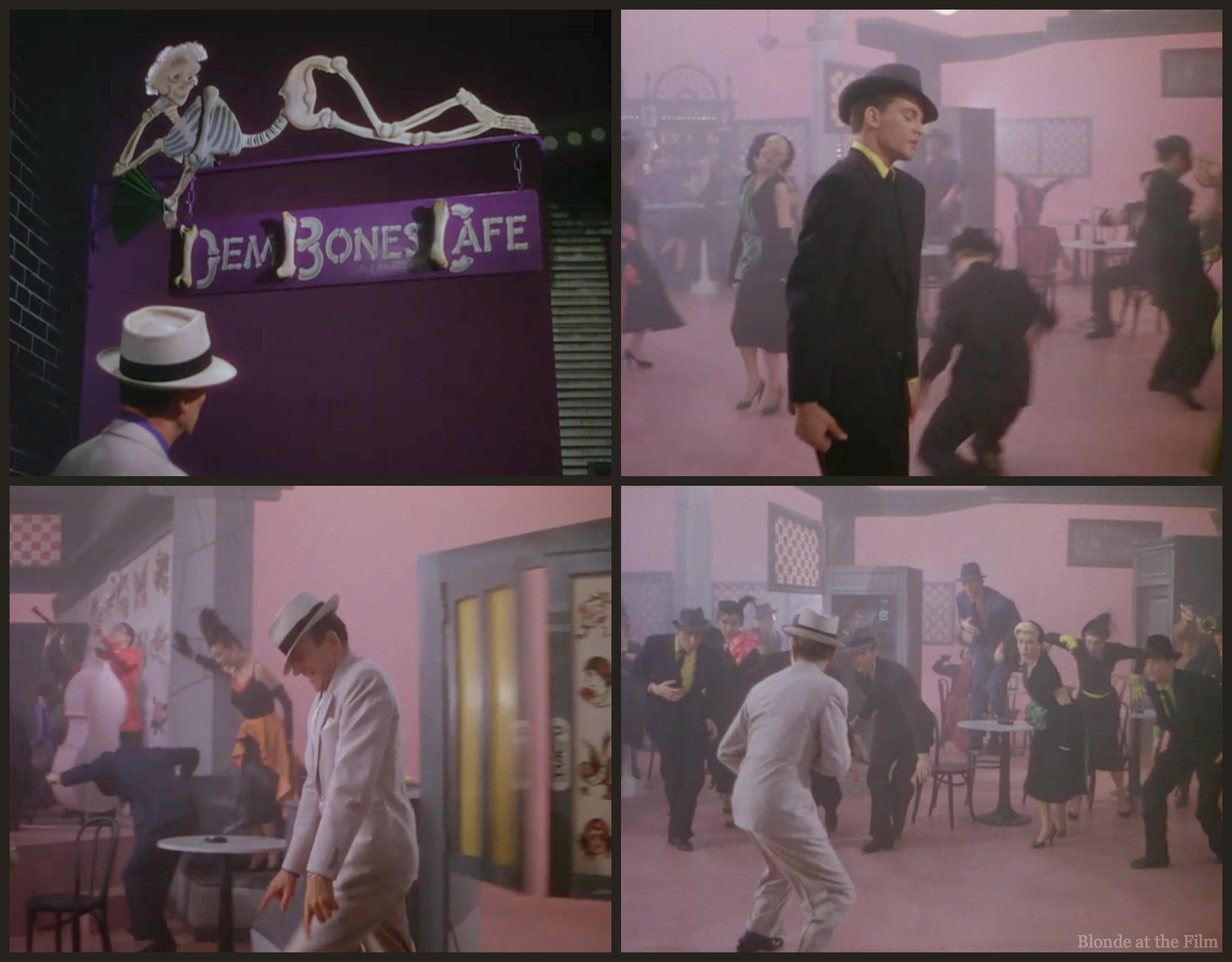 Finally, the bone clue. (It would be a waste of time to try to explain the plot of this ballet, as it is purposefully confusing and illogical like so many film noirs!) Rod arrives at Dem Bones Cafe where people do weird shuffling dances.