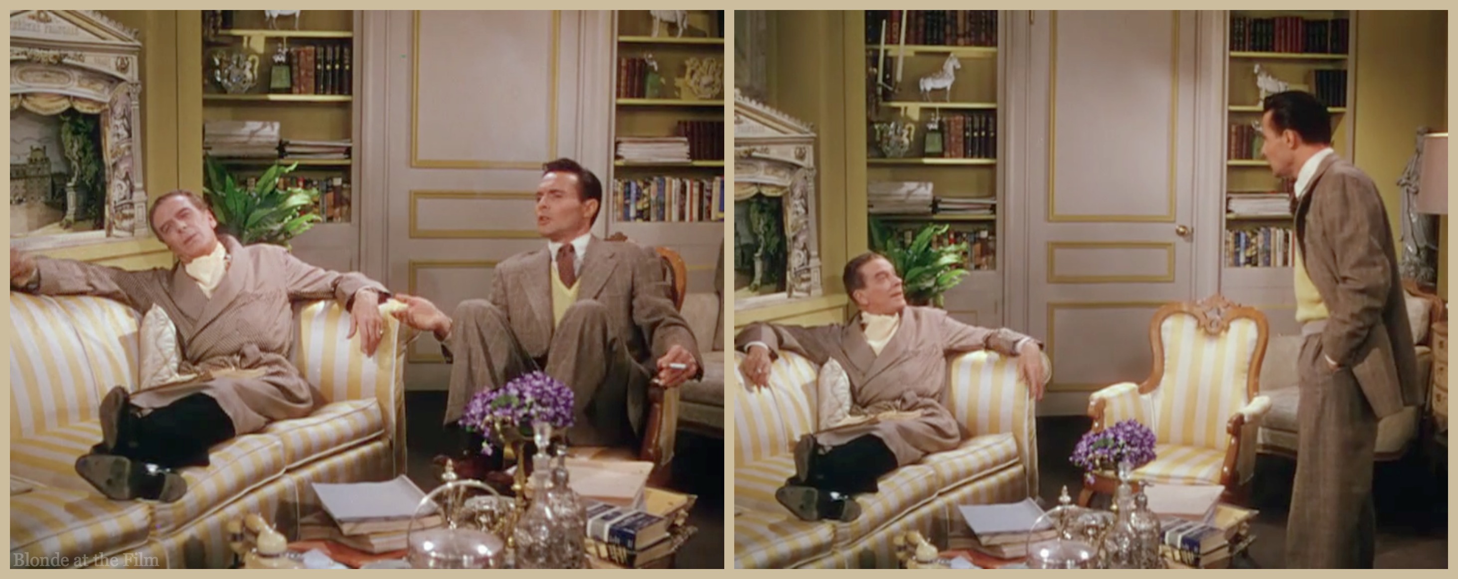 Vincente Minnelli’s use of color is a treat for the eyes. This might be his best color film. Those scenes in Jeff’s apartment, with the different-colored rooms, and costumes, are amazing. (btw, I think I read VM’s own home at one time had rooms in different color schemes, similar to Jeff Cordova’s.). The violets or whatever they are, in the yellow-beige scene between Jeff and (I think his name is) Paul, adds that little extra Minnelli touch of contrasting color.