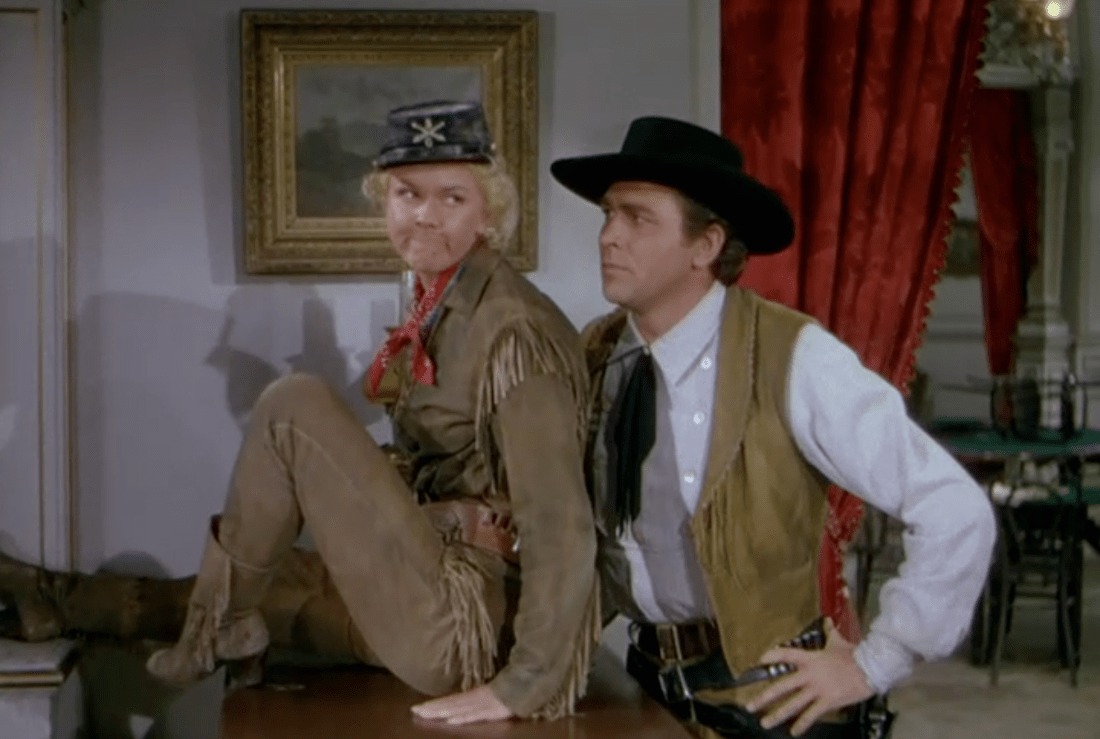 Apparently, Warner Bros. had wanted to get Day, their star musical actress, into buckskins for a while. Originally, Warners wanted Day to play Annie Oakley in a movie version of Irving Berlin‘s “Annie Get Your Gun.” That show had starred Ethel Merman on Broadway, and it had toured with Mary Martin. Warner Bros. thought it would be perfect for Day, and she wanted to play Annie desperately, but Warner Bros. was outbid by MGM, who paid the astronomical sum of $650,000, for the movie rights.