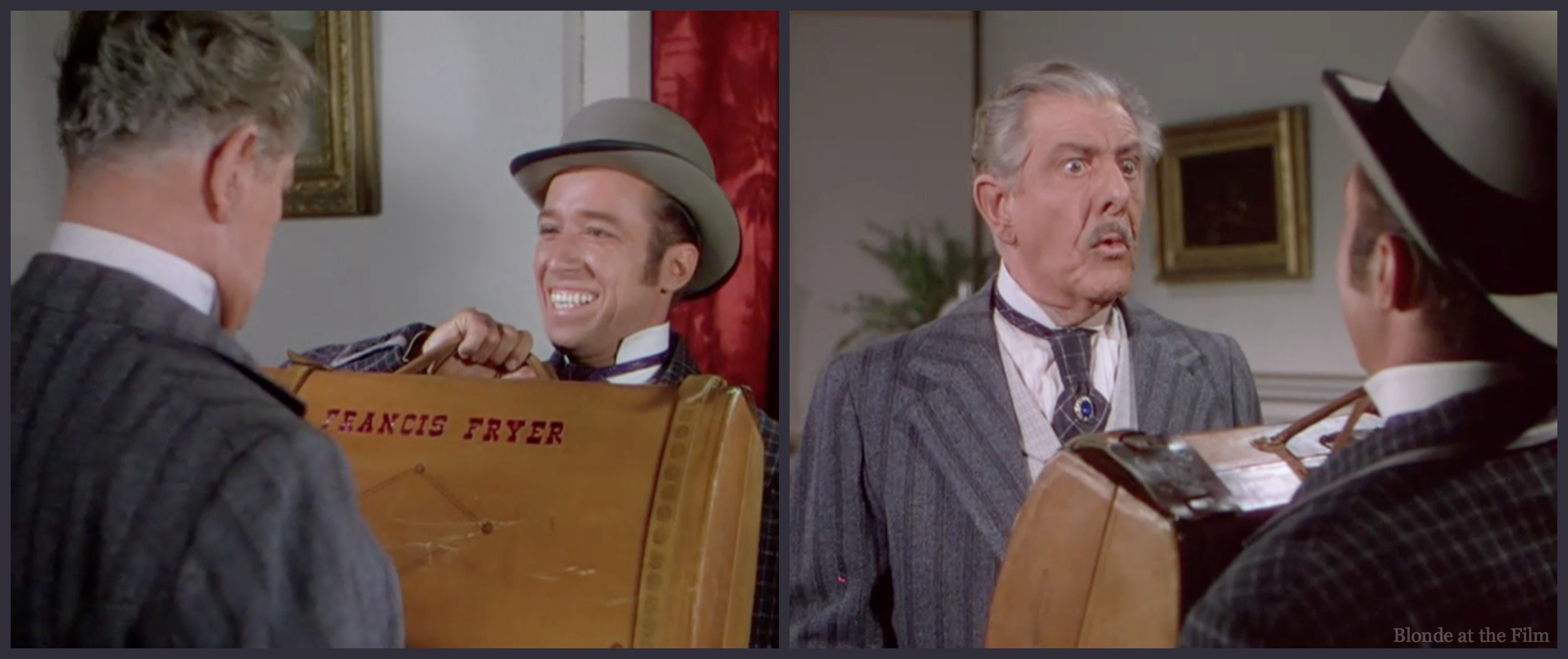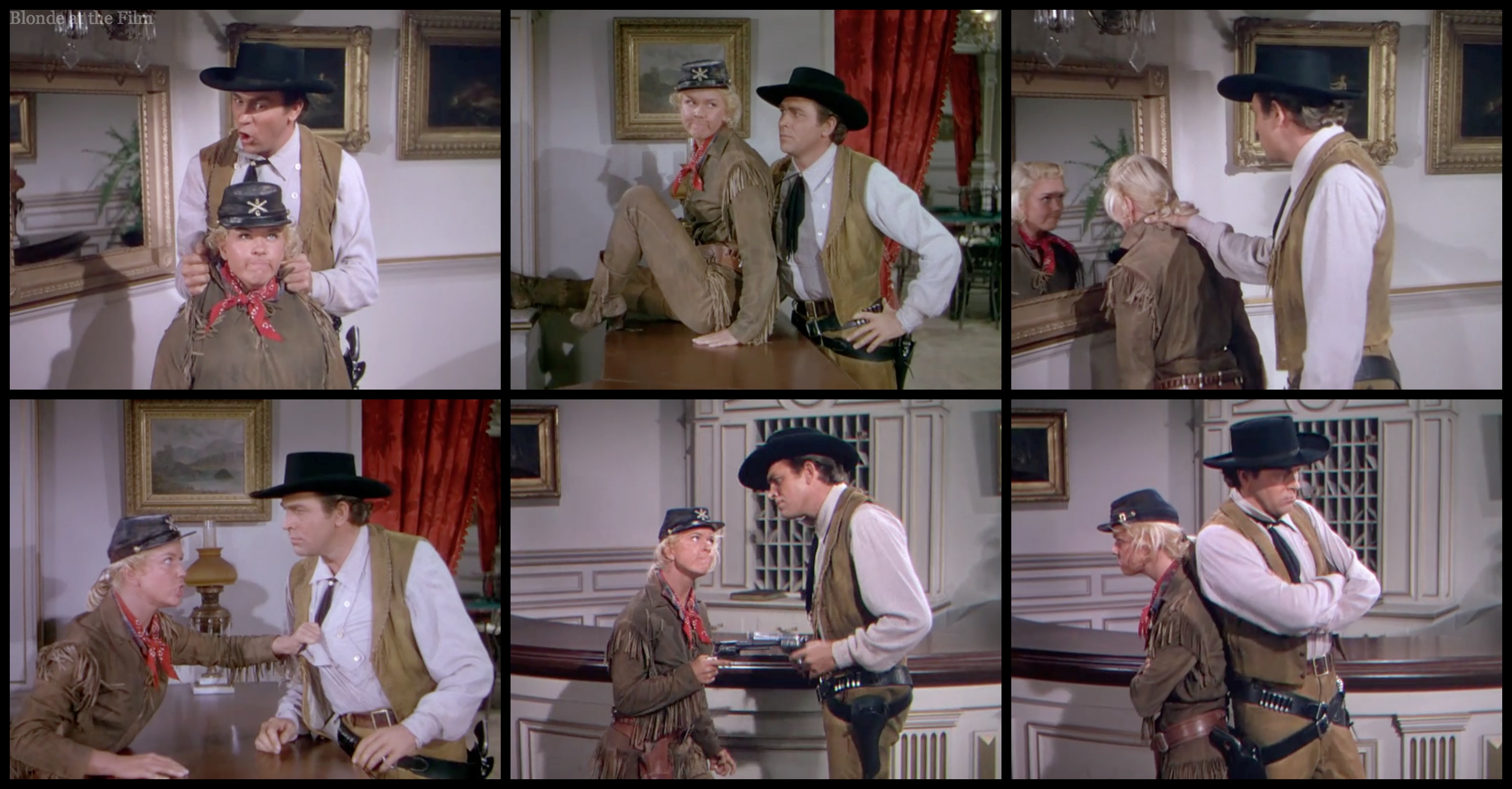 Meanwhile, Milly (Paul Harvey) the owner of The Golden Garter, is searching for Frances Fryer, an actress he hired who was supposed to be on that stagecoach. Well, Milly is unpleasantly surprised to find out that his actress is actually Francis Fryer (Dick Wesson), an actor. Milly is worried because he promised his customers a beautiful actress. Now what will he do?