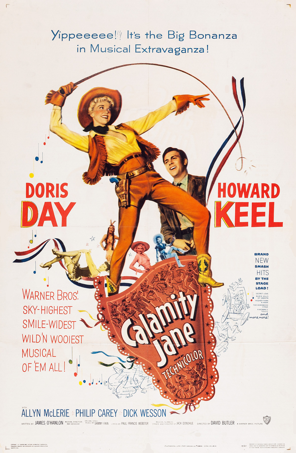 Calamity Jane is an exuberant, highly fictionalized story of that famous cowgirl and scout, Martha Jane Cannary, alias Calamity Jane. This movie is not a truthful historical document by any means, and WB felt no qualms about adding some blonde pizzazz and sparkle to the Wild West, never mind the songs!