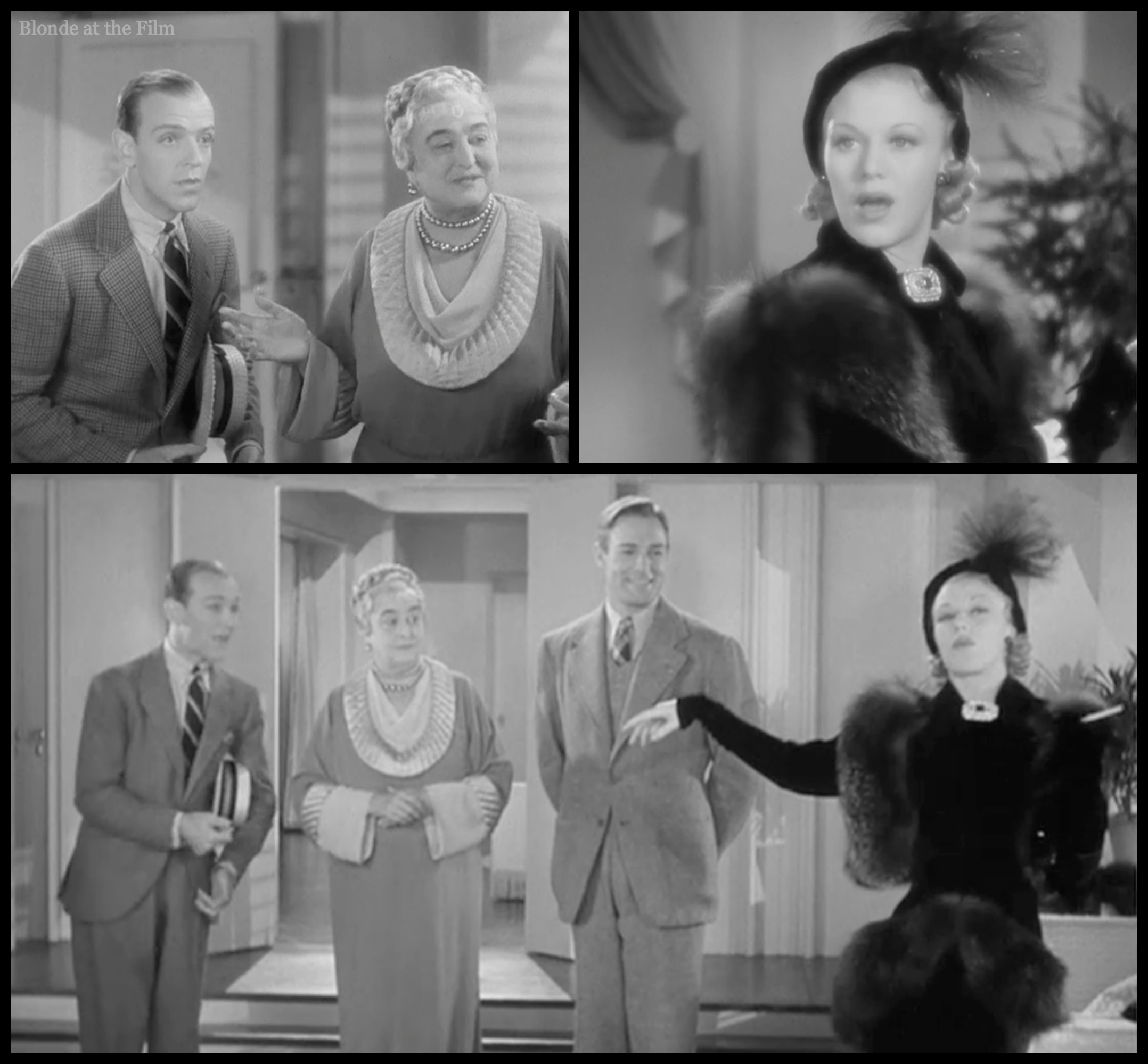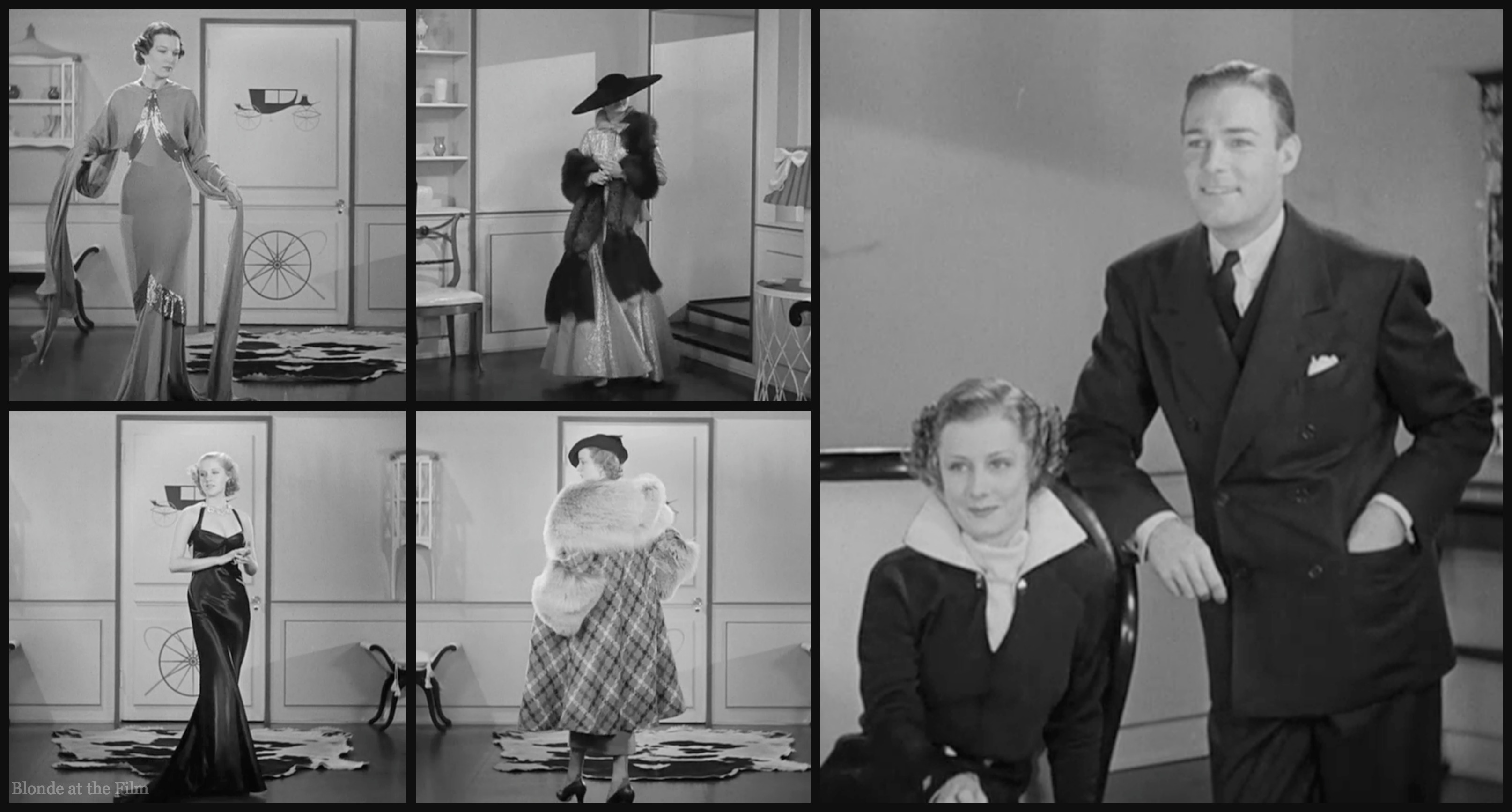 Fun fact: I’m fairly certain that the fur coat modeled in the show is the same one that Ginger Rogers wore in one of her next films, Swing Time (1936). Compare: