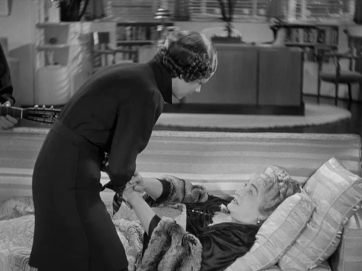 Speaking of the worst, what is happening with Dunne’s dress? 1930s shiny black pleather? RKO press releases for the film said that one of Dunne’s costumes was so flammable that a fireman was tasked with following her around the lot whenever she wore it. This could be that dress! It looks as though it might spontaneously combust at any moment.