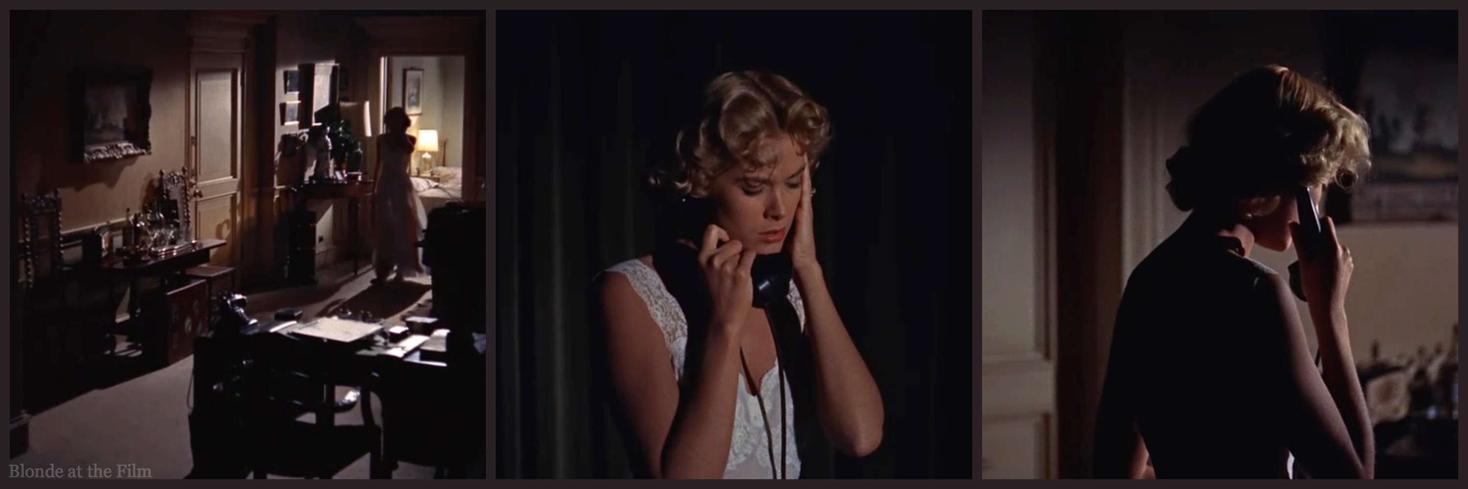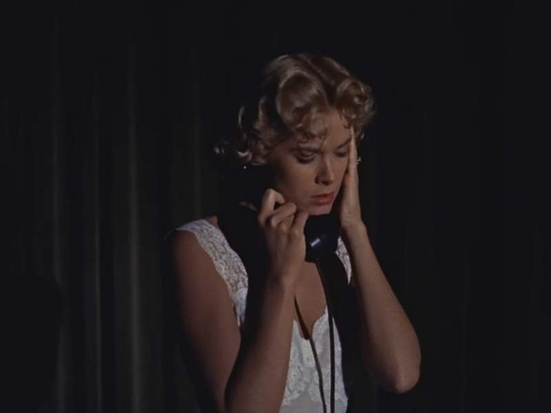 But Kelly disagreed with this vision. She remembered, “I was very unhappy about it, and I told him I didn’t think it was right for the part. He said he wanted a particular effect, but I said, “I don’t think that this woman is going to put on this great fancy robe if she is getting up in the middle of the night to answer a ringing phone and there’s nobody in the apartment.” And he said, “Well, what would you do? What would you put on to answer the phone?” I said I wouldn’t put on anything at all, that I’d just get up and go to the phone in my nightgown. And he admitted that was better, and that’s the way it was done.”