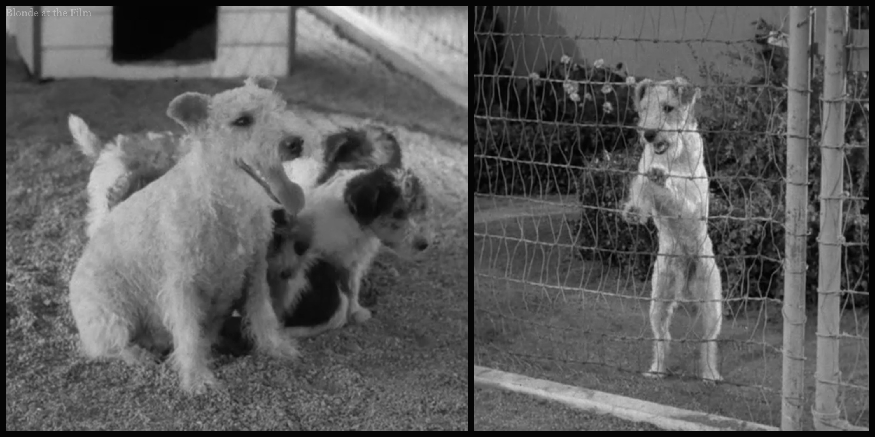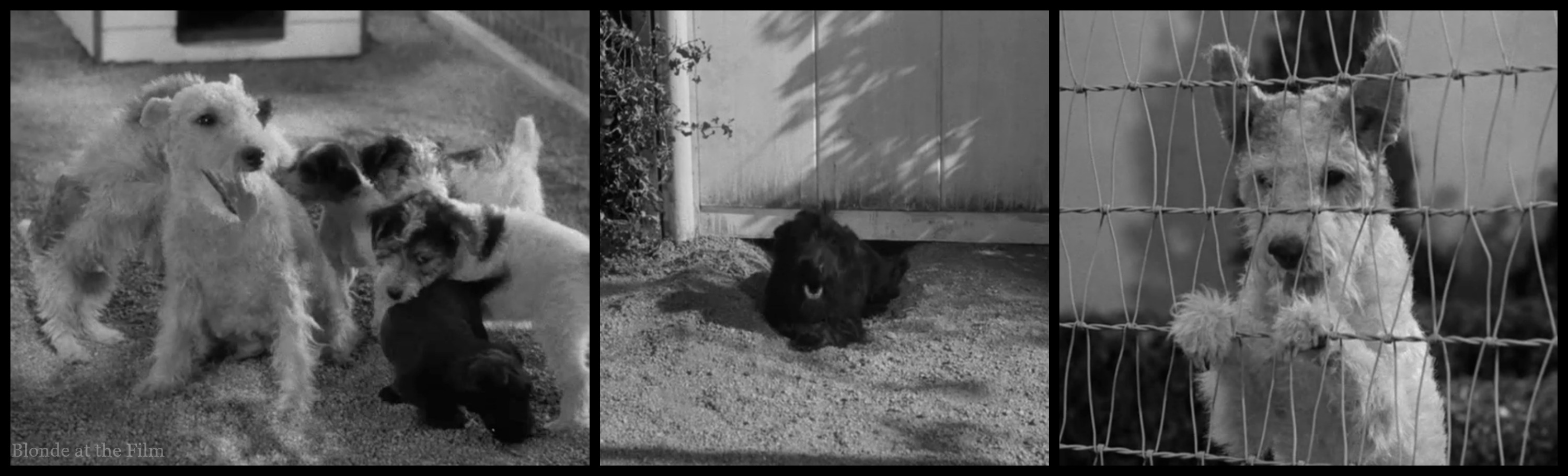 Back to the film! While Nick and Nora navigate the unexpected party, Asta runs around to the backyard. He is delighted to see Mrs. Asta and their adorable spotted pups: