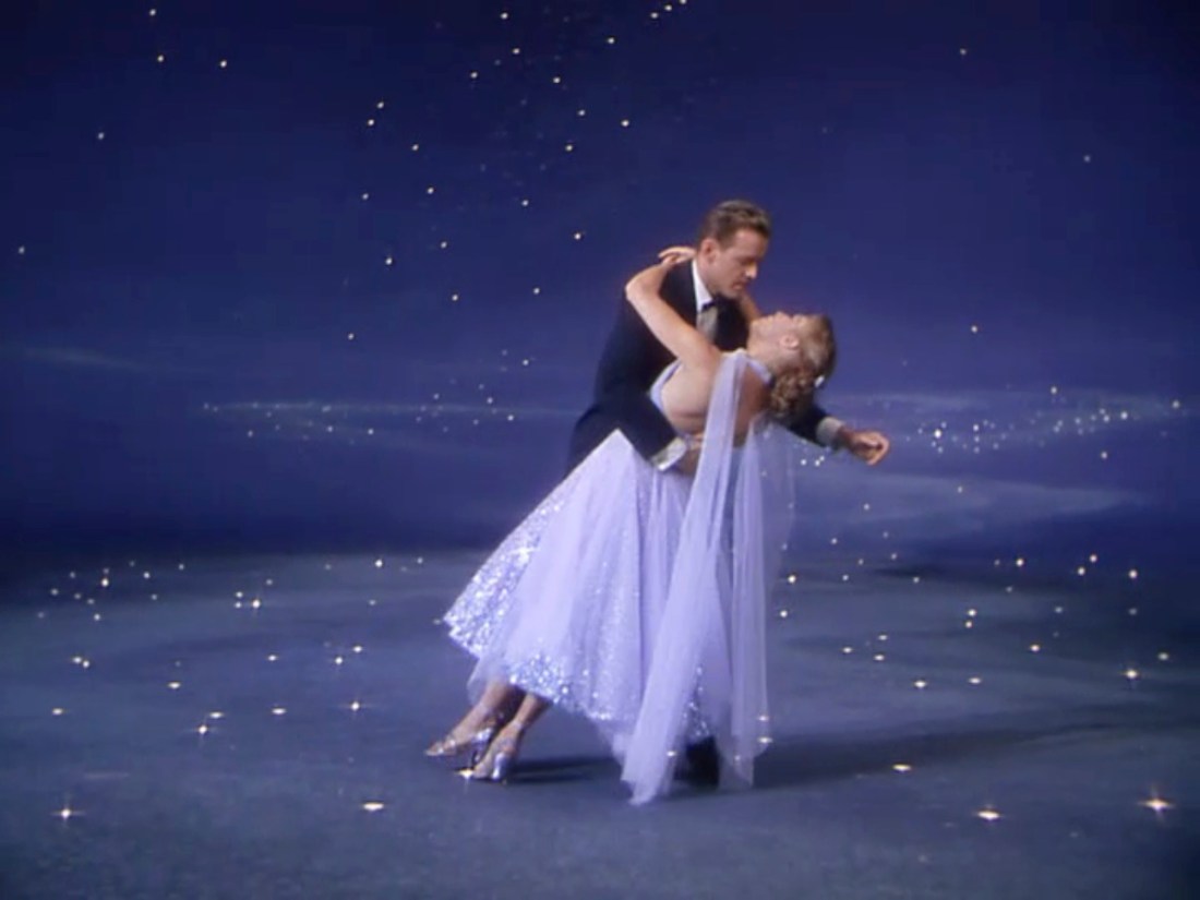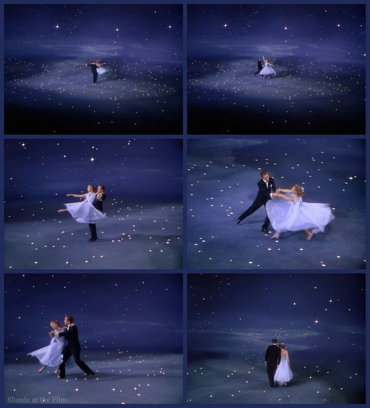 Eventually, Stephanie and Tony depart to take a carriage ride in the park, leaving our dancing duo alone. In a neat bit of movie magic, the cafe transforms into an endless blue sparkling with stars in one long, unbroken take.