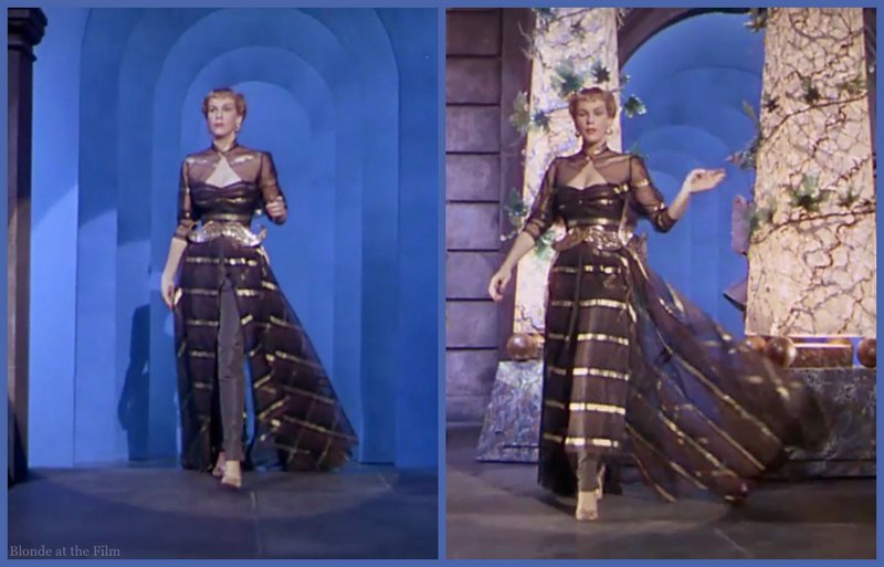 Another fun fact: the white gown with gold and pink accents was used again in The Band Wagon (1953) during the “Girl Hunt Ballet” number on Julie Newmar: