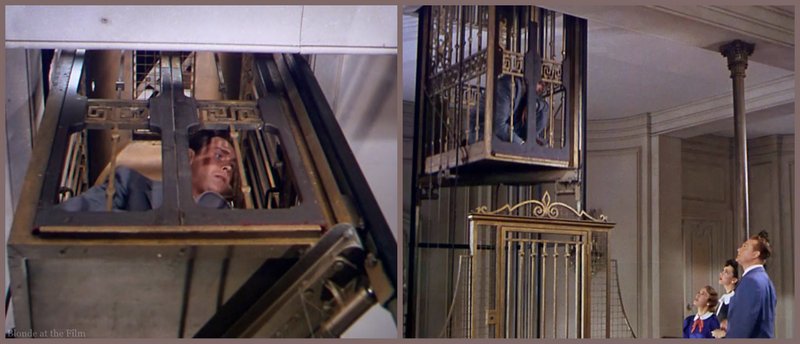 And the elevator doesn’t work. Al gets stuck between floors, and Stephanie (Kathryn Grayson) rushes to his aid.